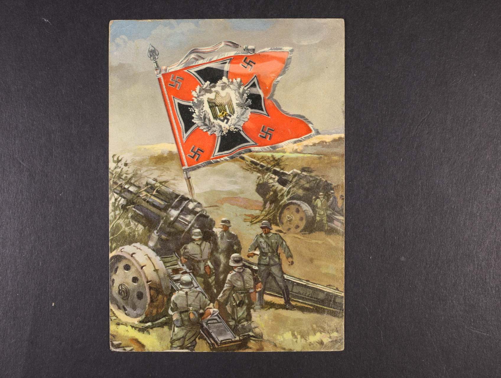 833 Barevná pohlednice, dělostřelectvo, bojová zástava, prošlá feldpost 1941 500
