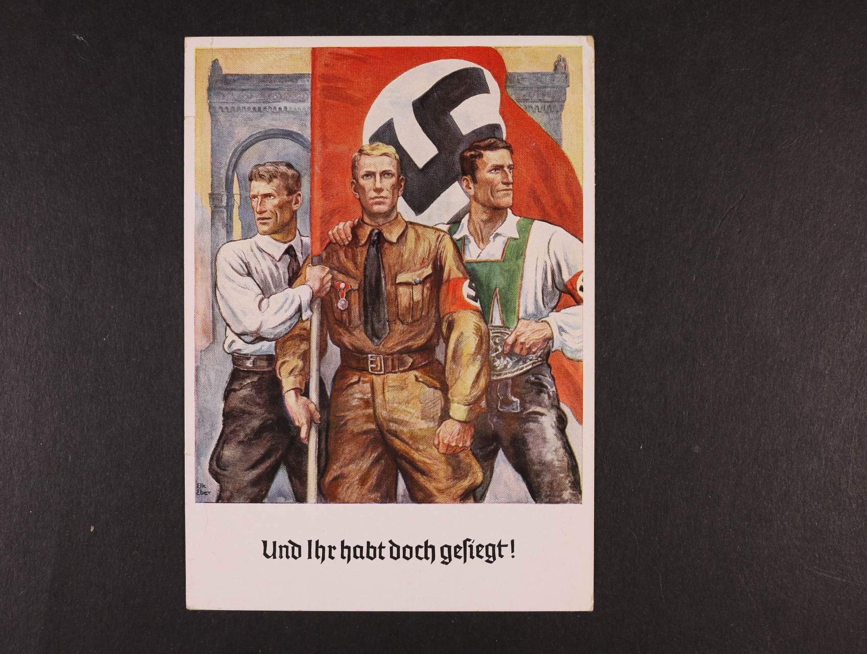 836 bar. pohlednice "Und Ihr habt doch gesigt!", na zadní straně pamětní propag. raz. Haupstadt der Bewegnung München 9.11.1938 400