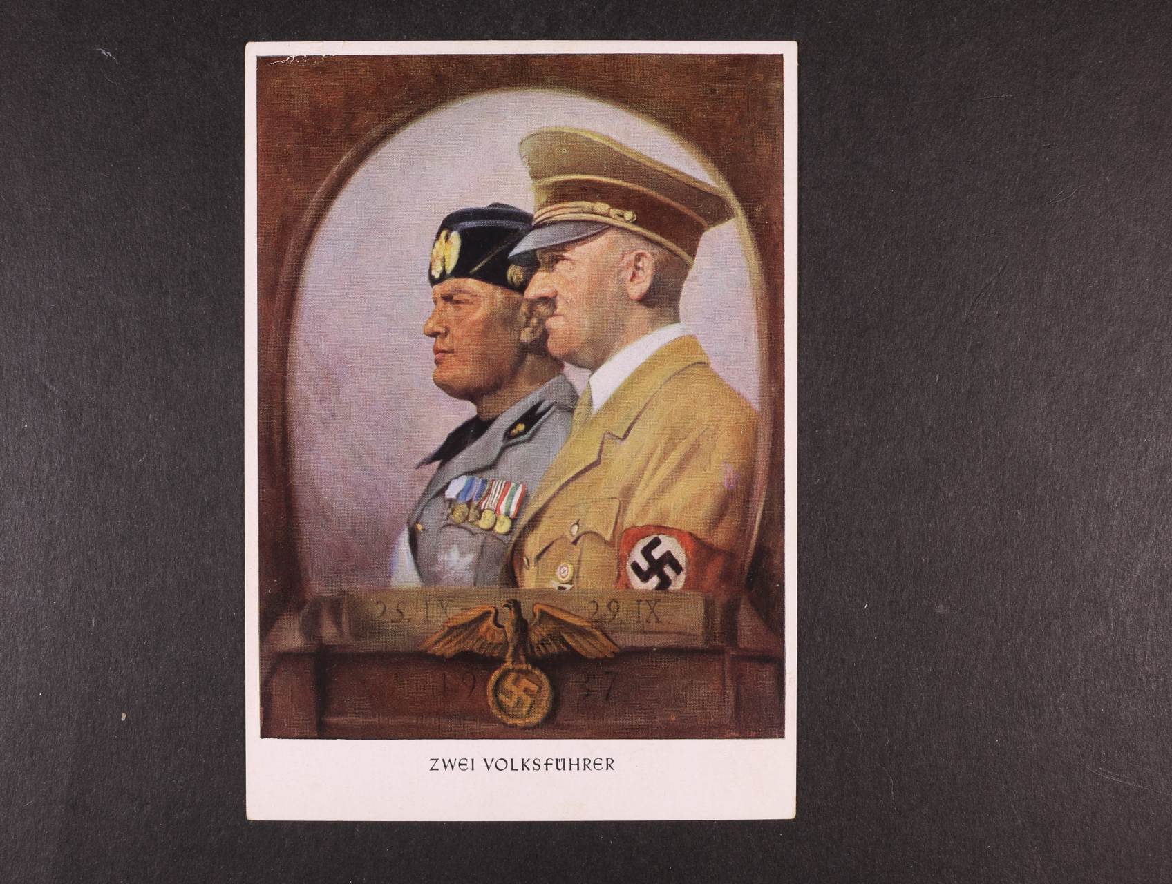 849 jednobar. fotopohlednice "Der Führer und der Duce, die Garanten des Friedens", nepoužitá, na zadní str. pam. raz., zajímavé 400