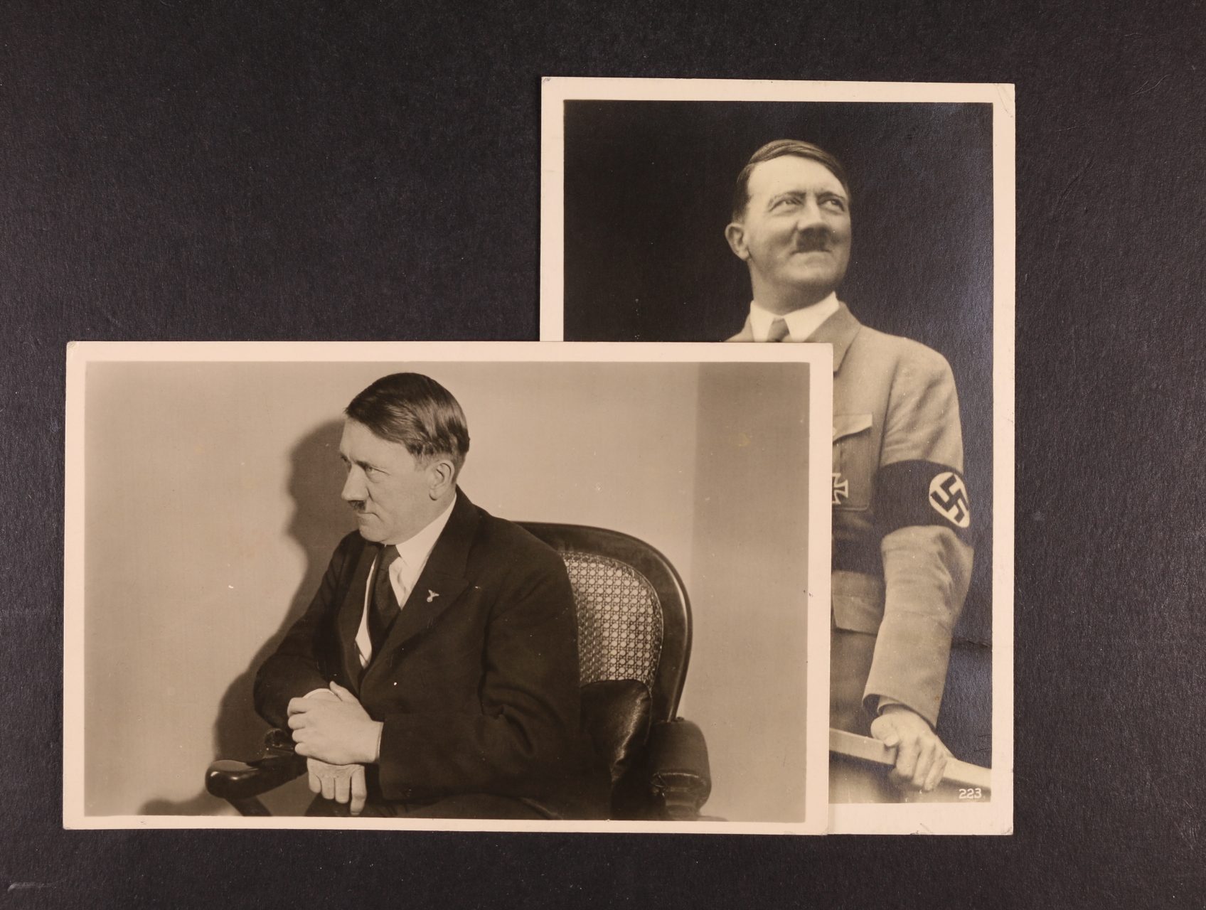 840 dvě jednobar. fotopohlednice s portrétem A.H., obě prošlé, lux. kvalita 300