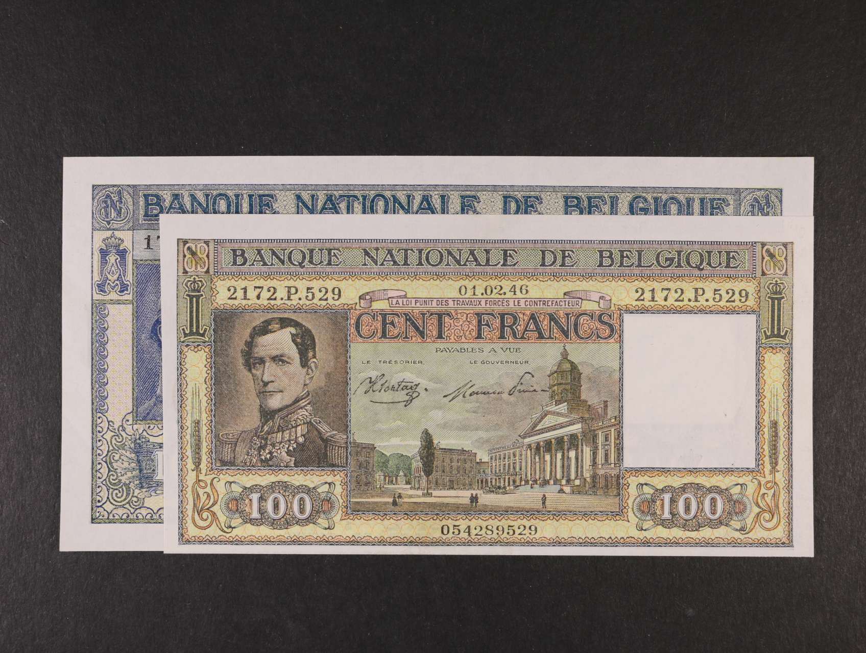 2174 100 Francs 1.2.1946, 1000 Francs 1.3.1945, Pi. 126, 128b 1000