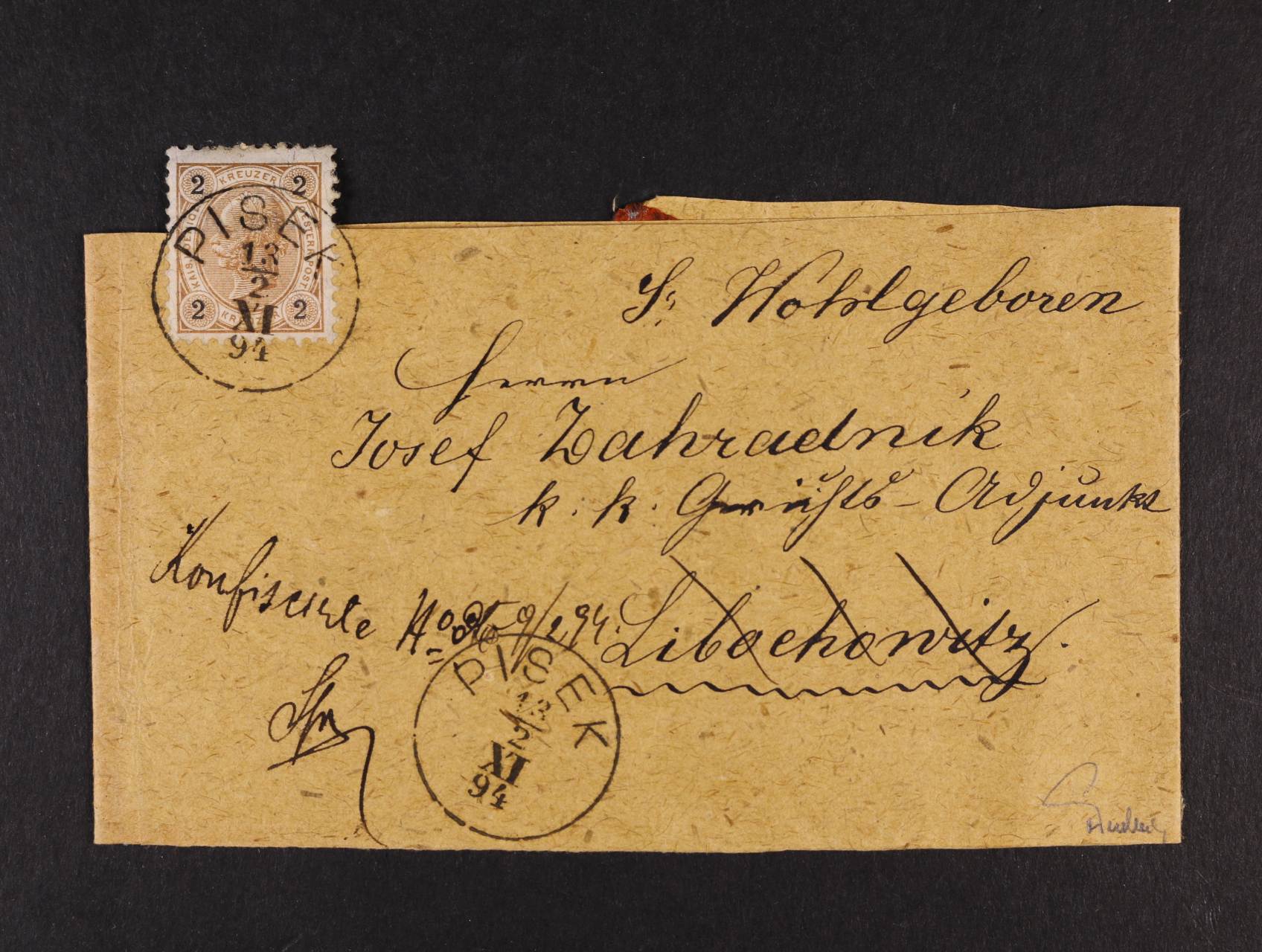 novinová páska frank. zn. Mi. č. 51 s raz. PISEK 13.2.94, velmi zajímavé, zk. Ferchenbauer