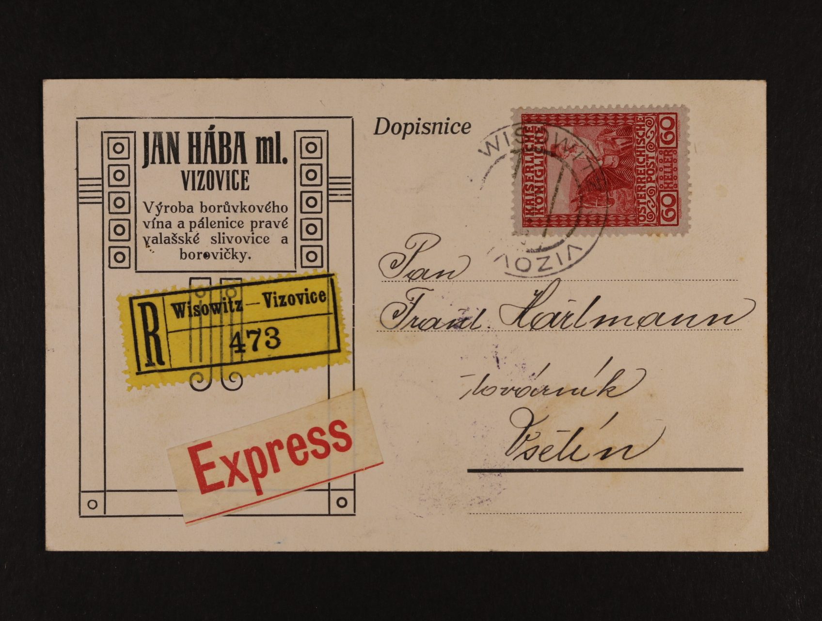 firemní KL R-EXPRES do Vsetína frank. zn. Mi. č. 151 s pod. raz. WISOWITZ 26.8.16