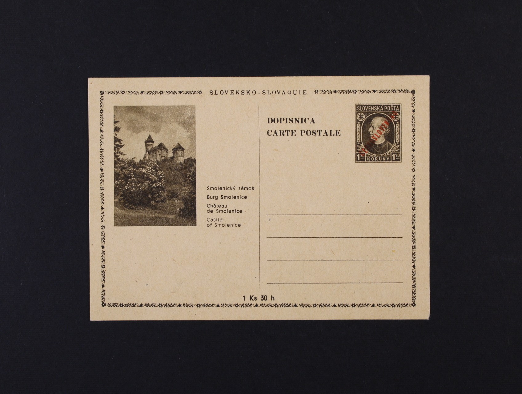 slovenská celina CDV č. 4/18a chybotisk strom vlevo s příčným červeným přítiskem ČESKOSLOVESNSKO, nepoužitá, dobrá kvalita