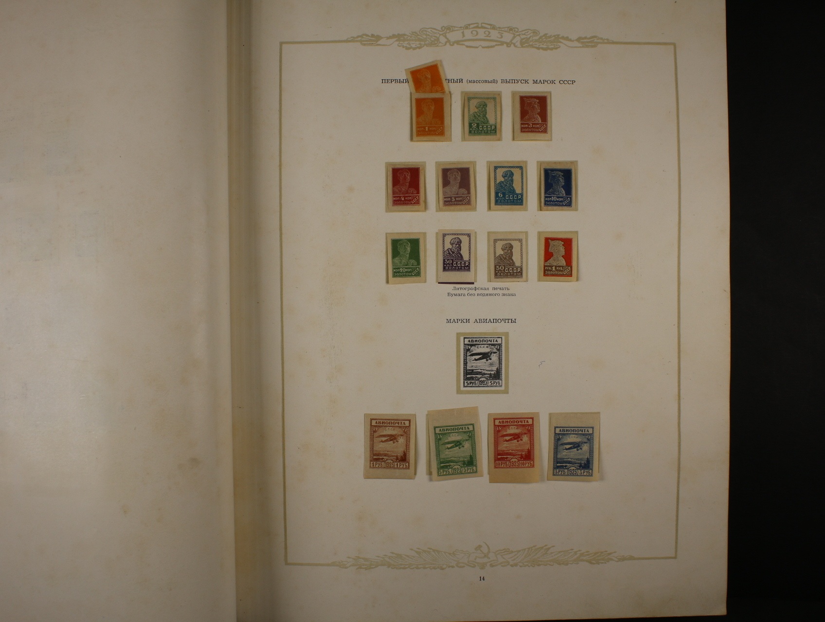 Rusko - generální sbírka zn., aršíků z let 1921 - 1963 se zaměřením na typy, barvy, obsahuje mj. zn. Mi. č. 212a + b, 213ax + by, 214c, 365 Bx - 374 Bx, 397ax - 401cy, 402 A + C - 405 A + C, 414 - 20, 427 - 49, 1527 - 34, Bl. 3, období 1921 - 1950 je na původních ruských listech s popisem v původních šroubových deskách, zbytek na listech Pofis ve dvojích pérových deskách, některé zn. a bloky v letech 1946 - 1950 jsou přilepené a nejsou započítané v ceně, kat. cena činí cca 12500 EUR (ceny s nálepkou)