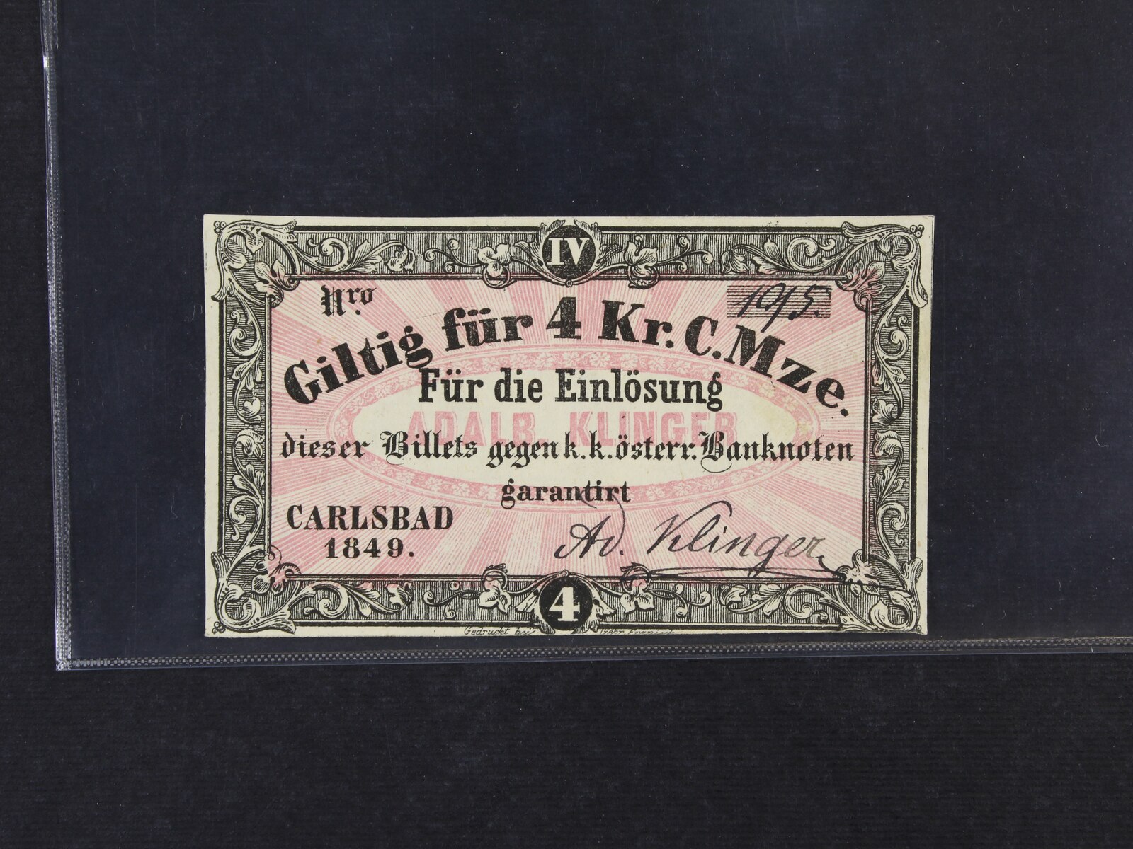 Carlsbad (Karlovy Vary), 4 kr. C.M.1848 Adalbert Klinger, V.R. 185.20.09.F