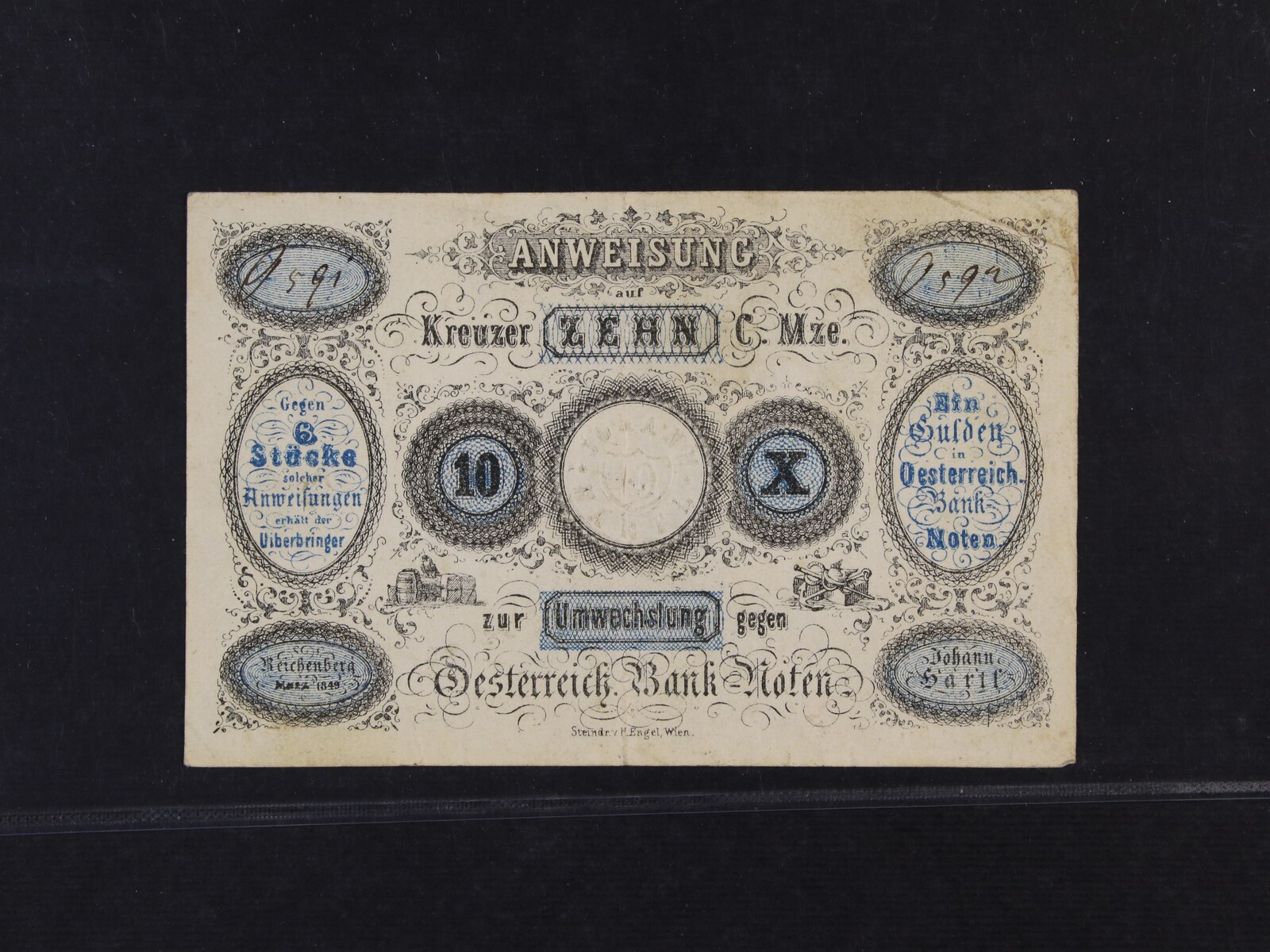 Reichenberg (Liberec), 10 kr. C.M. III.1849 Johann Hartl, na R raz., V.R. 1080.11.10.II.O