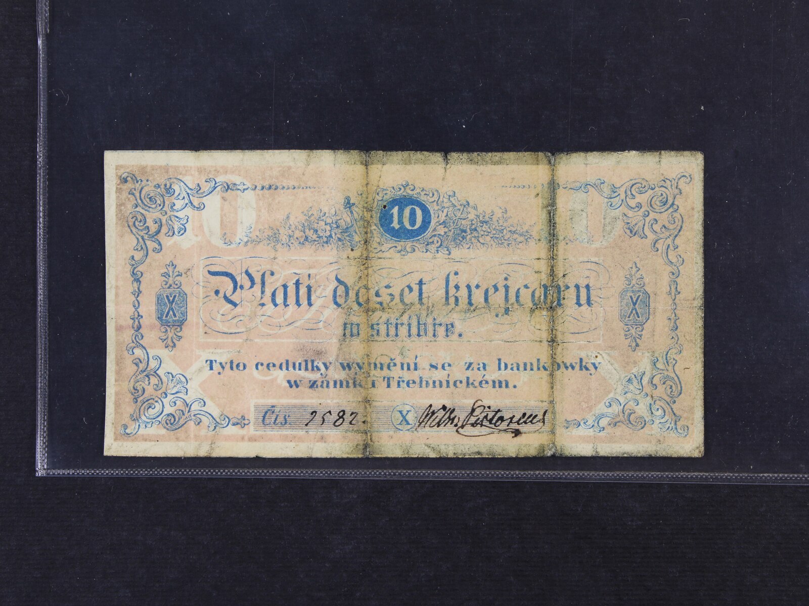 Warnsdorf (Varnsdorf), 10 kr. C.M. 1.10.1848 J.A.Wähner, V.R. 1435.08.11.a.F, vytržený horní okraj