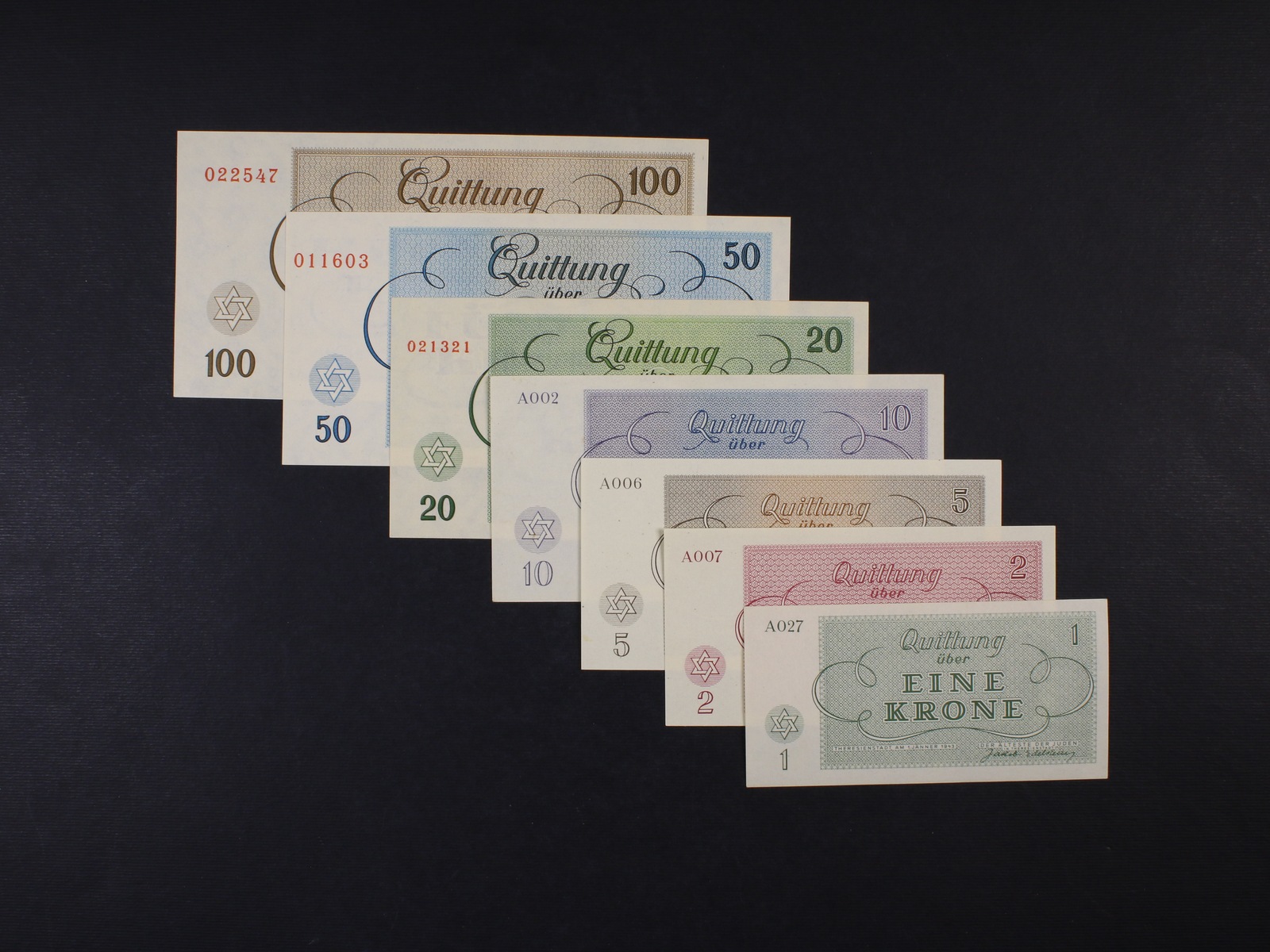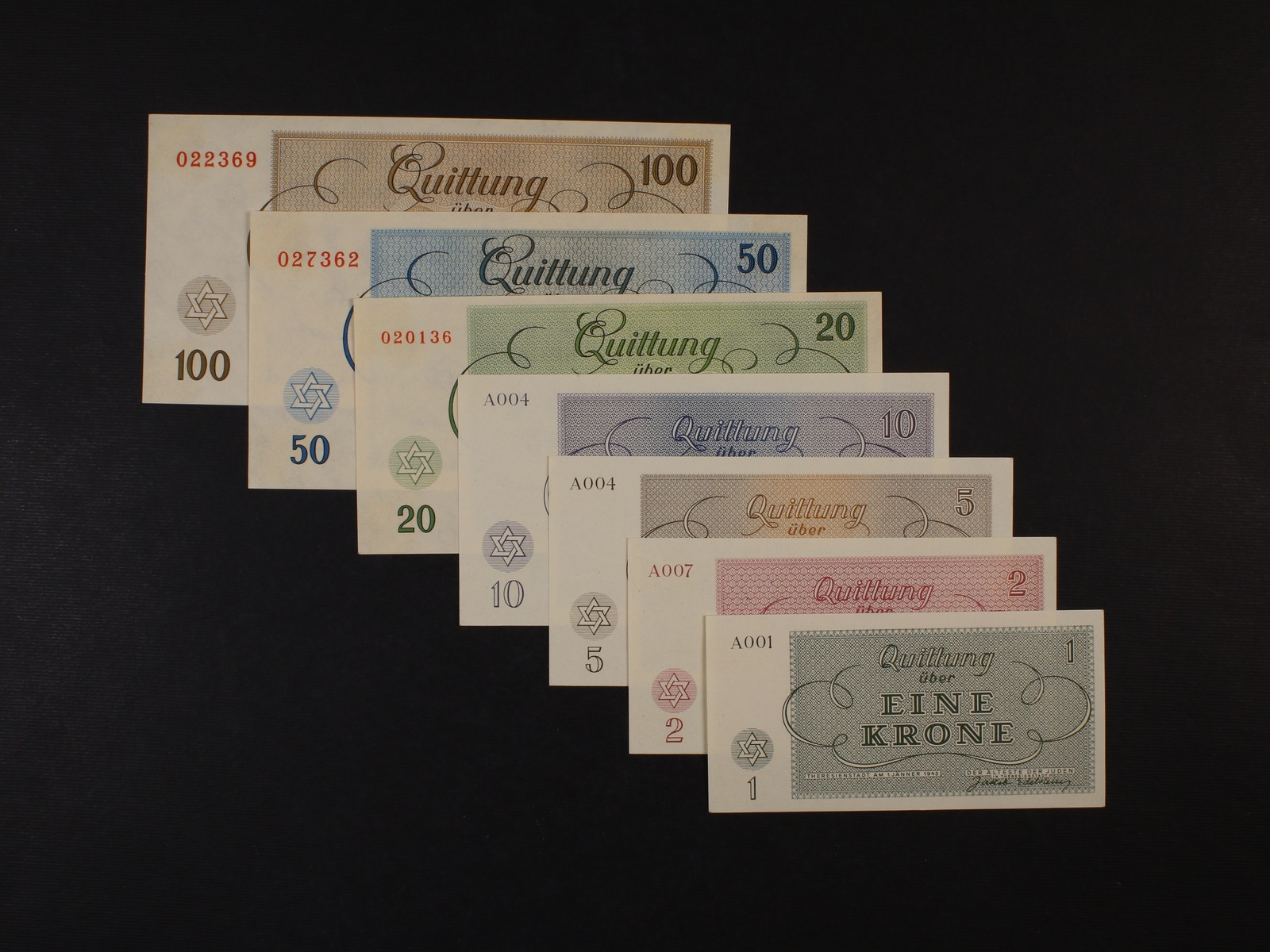 Theresienstadt (Terezín) 1 K - 100 K 1.1.1943 sada 7 ks, Ba. 311.4.1 - 7, Pi.-Si. 25 - 35