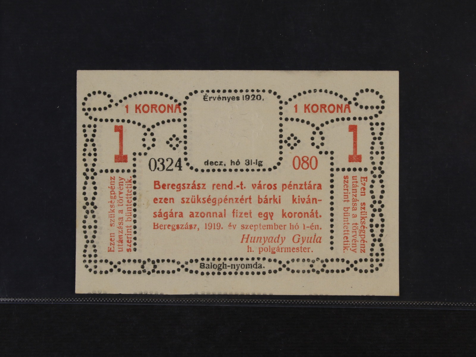 Beregszász (Berehovo), 1 K 1.9.1919 město, H.H. 6.1.1