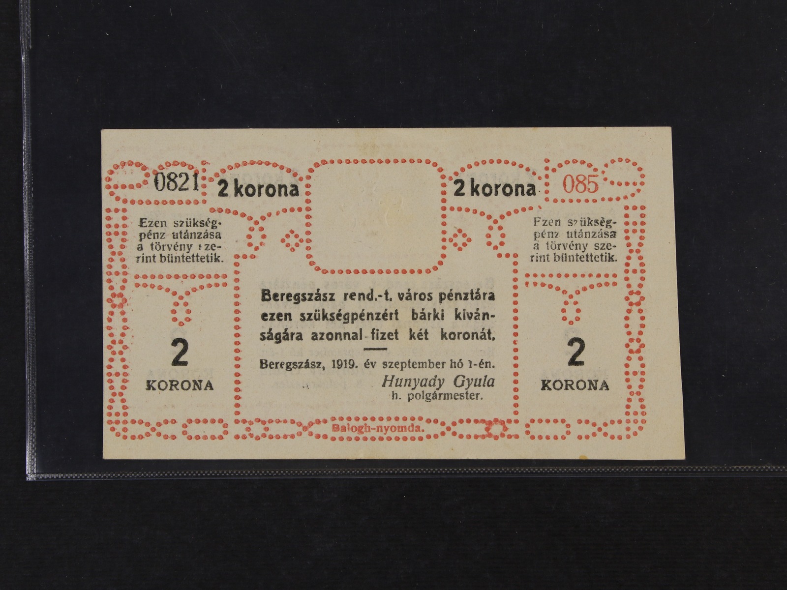 Beregszász (Berehovo), 2 K 1.9.1919 město, H.H. 6.1.2