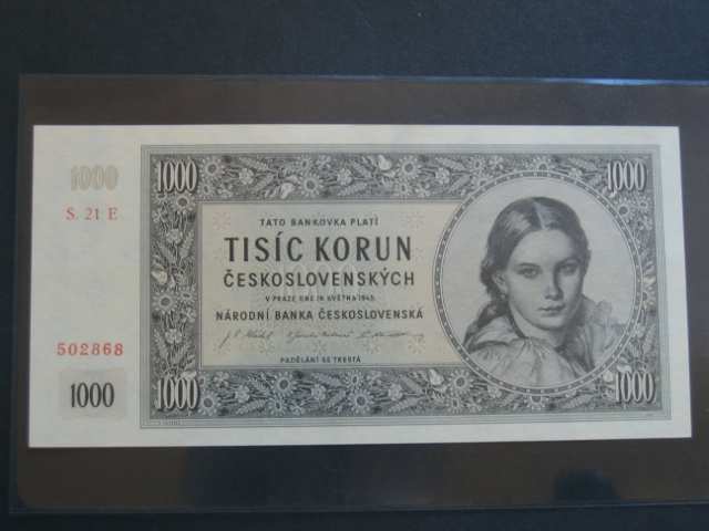 1000 Kčs 16.5.1945 série E, Pi. 74a, Ba. 78d