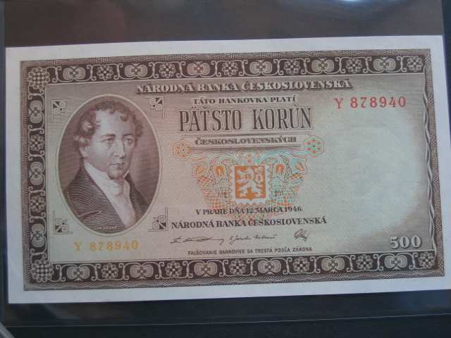 500 Kčs 12.3.1946 série Y, Pi. 73a, Ba. 80a