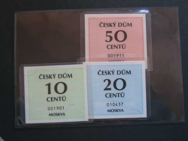 569 poukázky 10, 20, 50 centů Český Dům v Moskvě, laminované 300