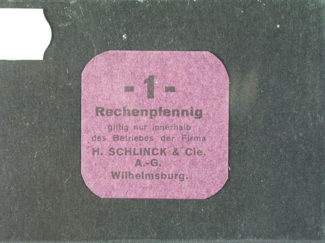 785 Wilhelmsburg, 1 Rechenpfenig H.Schlick & Cie. A. - G., jednostranna, karton 300