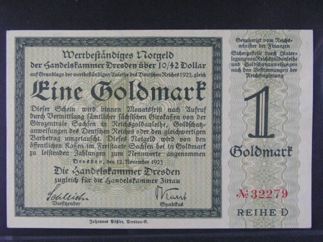 794 Dresden - Handelskammer, 1 Goldmark - 10/42 Dollar 12.11.1923 280