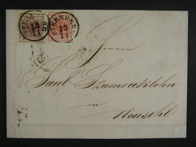 skl. dopis z r. 1854 frank. zn. Fe. c. 3 HP typ III a zn. Fe. c. 4 HP, typ III s pod, raz. STERNBERG 13.11., 150 EUR