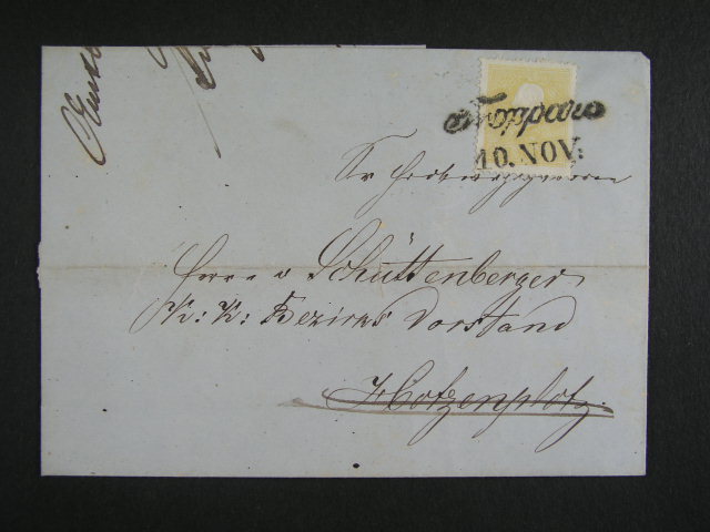 skl. dopis z r. 1859 frank. zn. Fe. c. 10 II, pod. radkove raz. TROPPAU 10.NOV., prich. raz., 400 EUR