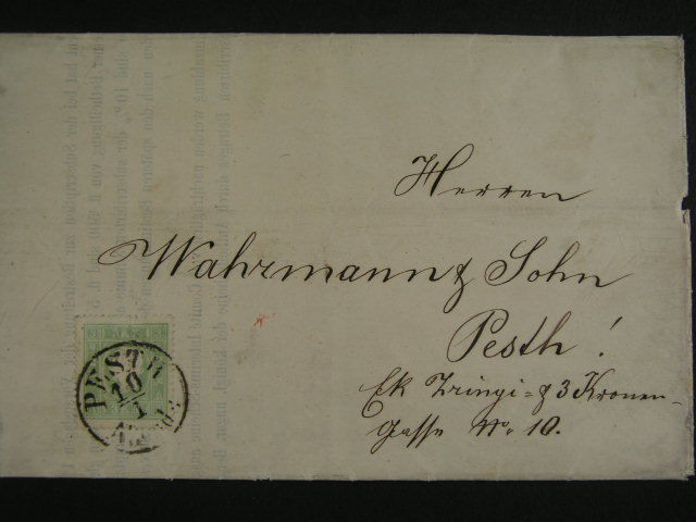 skl. dopis z r. 1861 frank. zn. Fe. c. 12 IIb s pod. raz. PESTH Abend 10.1., 450 EUR