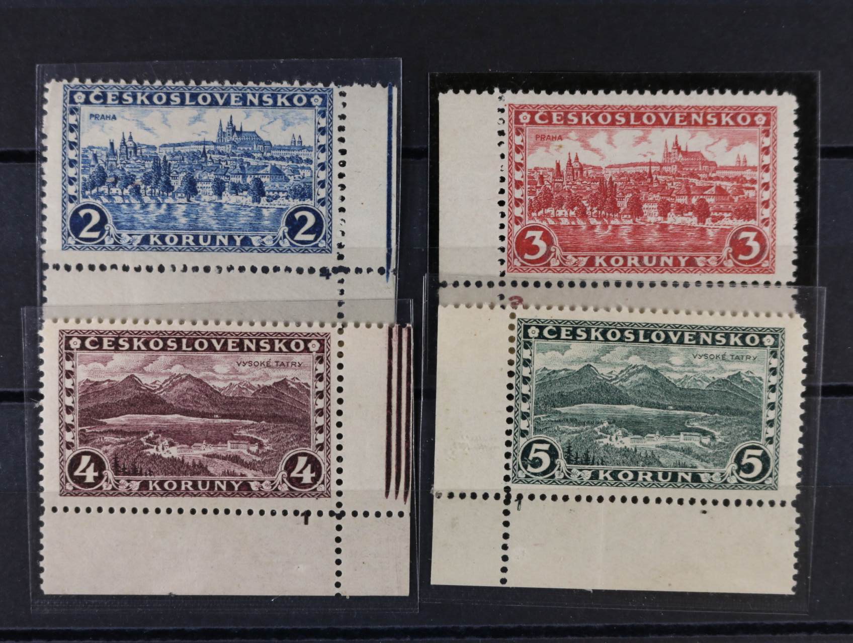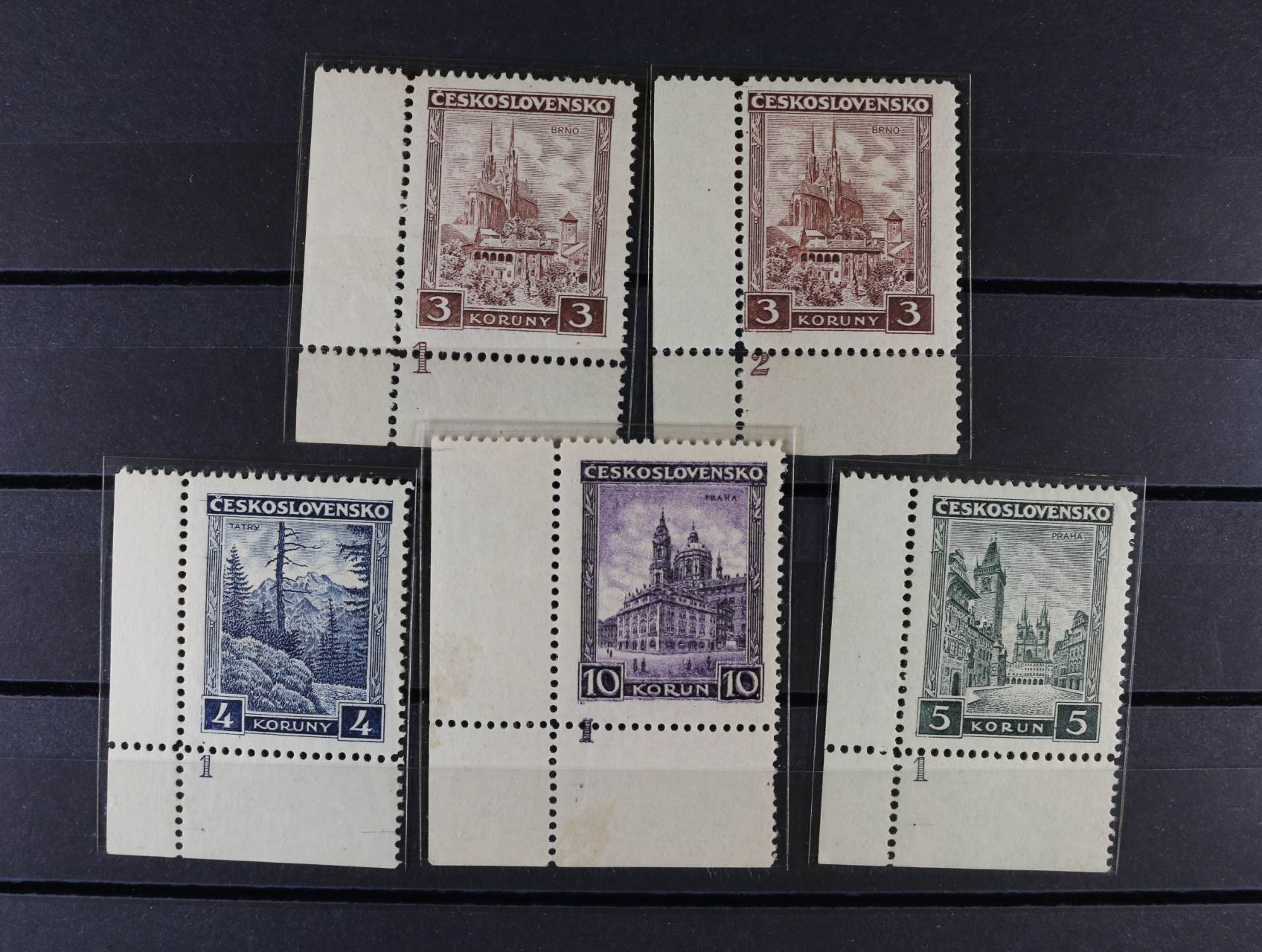 zn. č. 254 - 57 - levé spodní roh. kusy s DZ 1 + 254 s DZ 2, kat. cena 16300 Kč