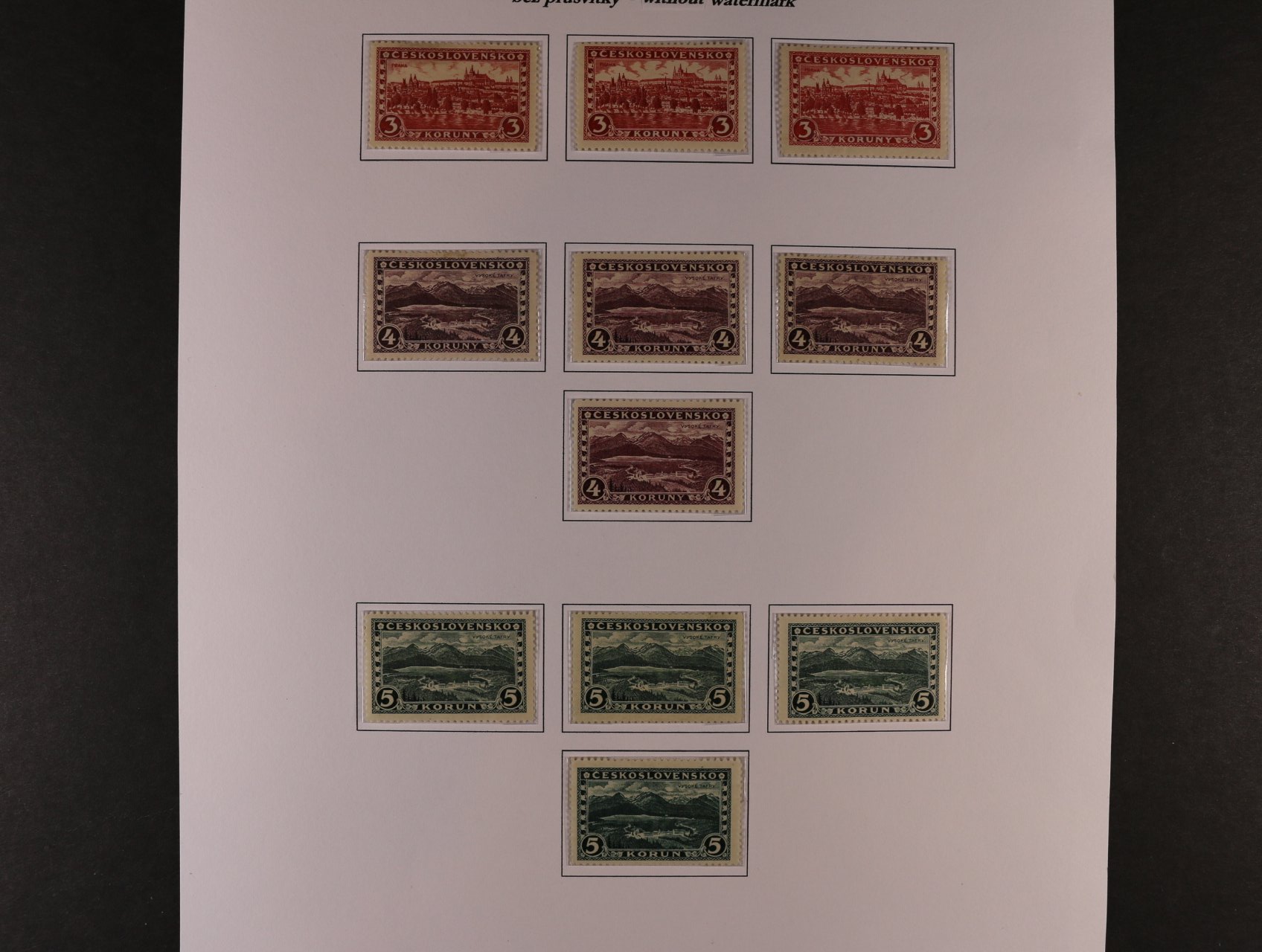 zn. č. 268 - 3 ks s bar. skvrnami, zn. 269 - sestava 7 ks zn. se složkami papíru, resp. bar. skvrnou, zn. 271 - 2 ks se složkou papíru