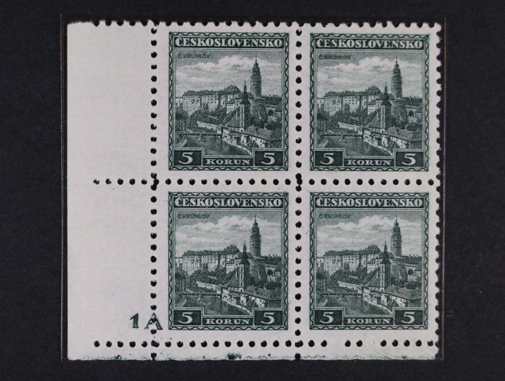 zn. č. 267 DV 32/1 A (dvojitá moletáž) - levý spodní roh. čtyřblok s DZ 1 A