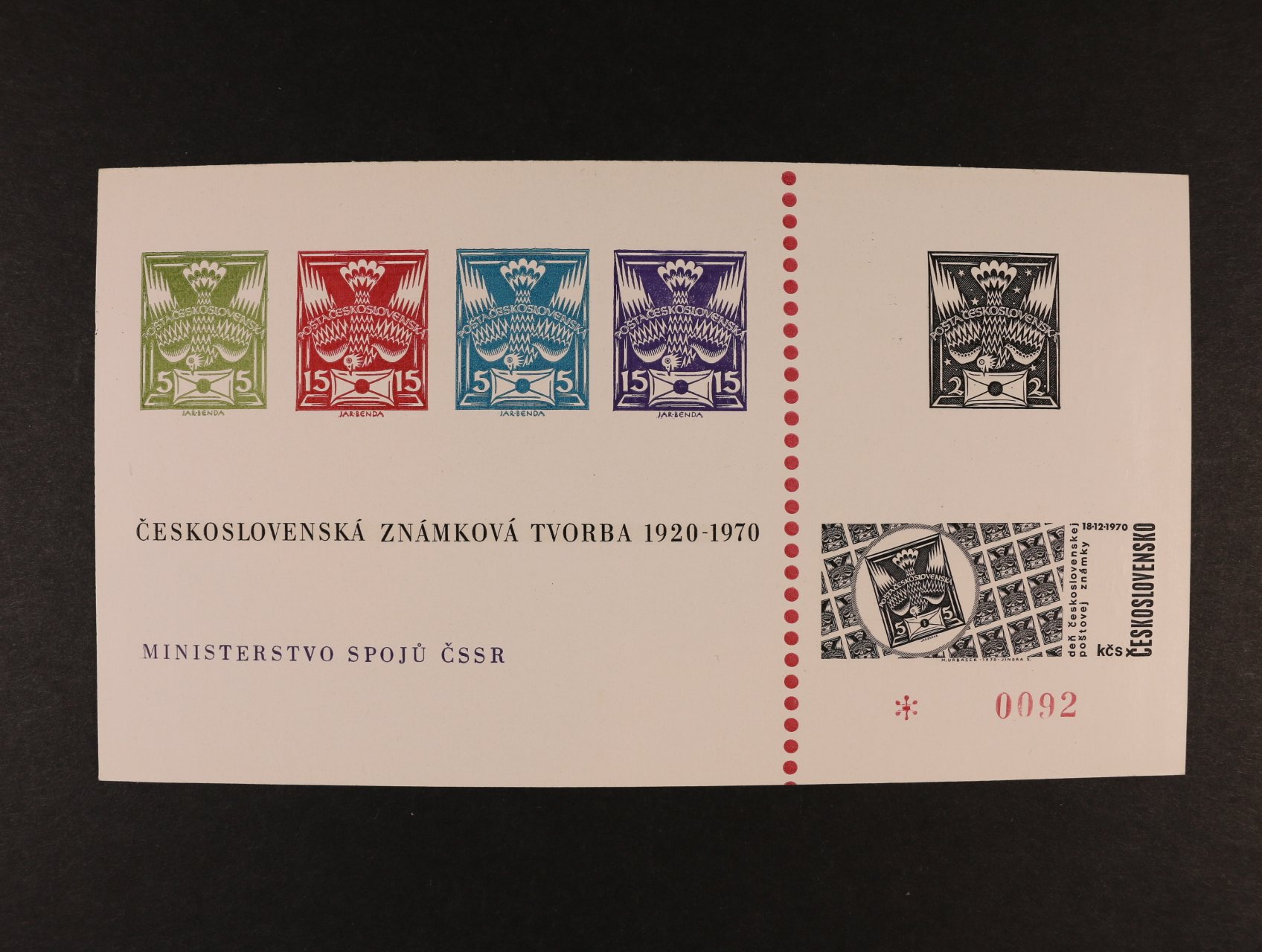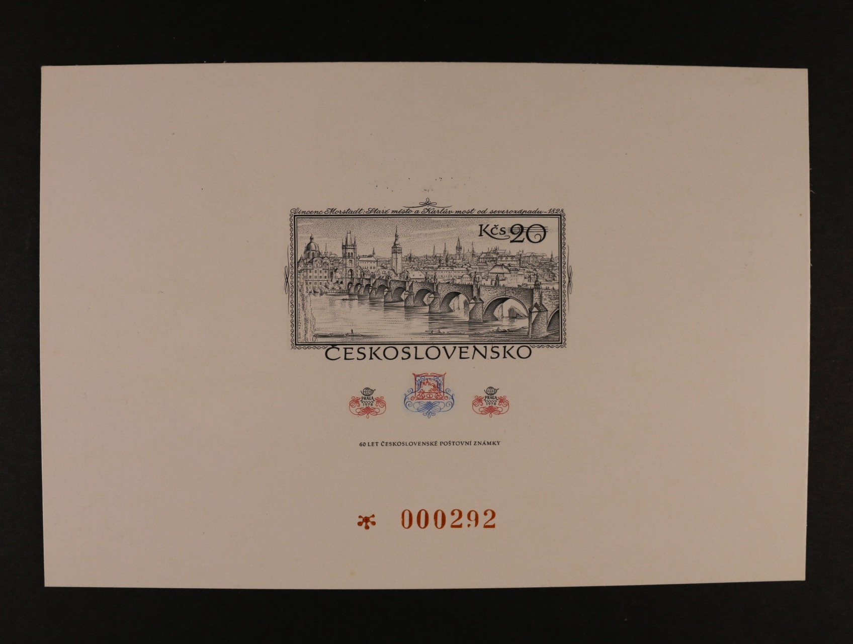 ZT zn. 1,50K s portrétem prezidenta K. Gottwalda v 10ti-bloku s levým okrajem z nevyčištěné desky černé barvě n křídovém papíře, zk. Karásek