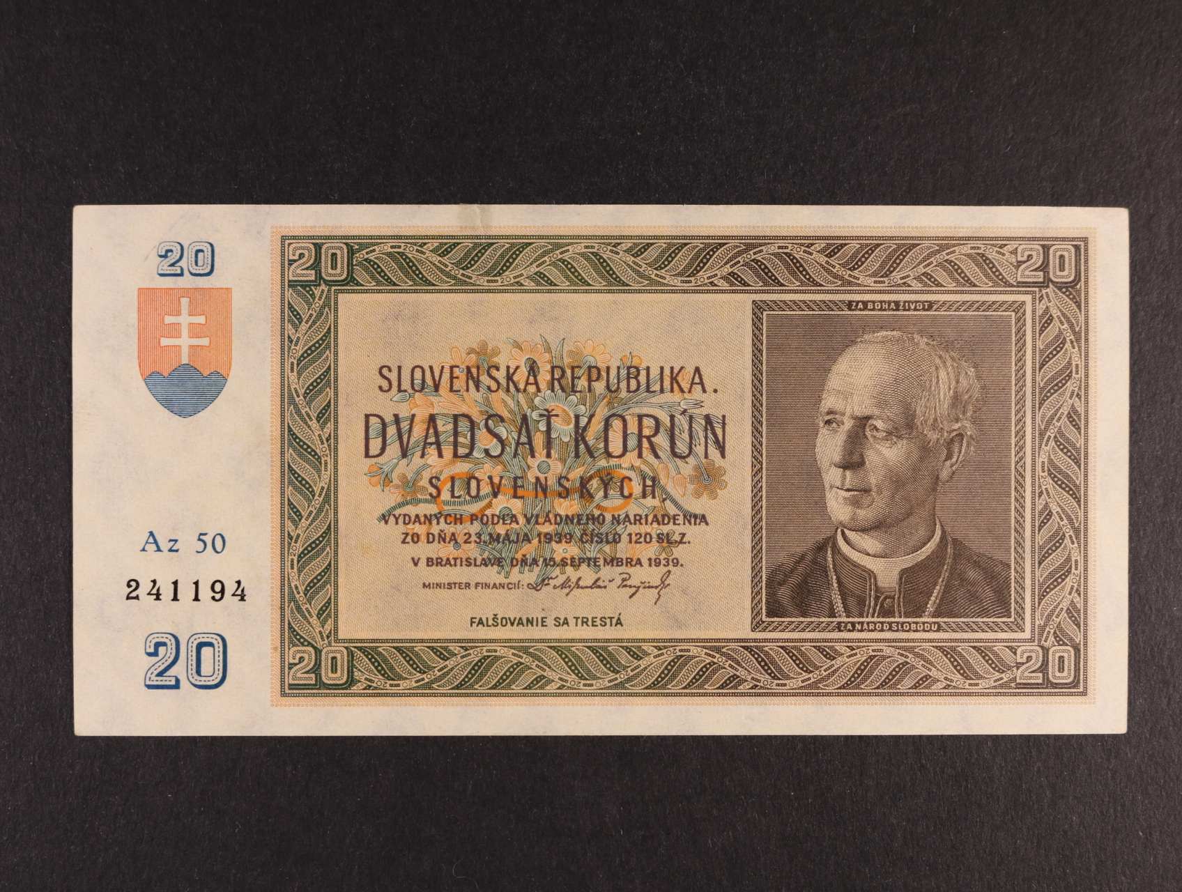 2054 20 Ks 15.9.1939 série Az 50, Ba. 47b, Pi. 5a, v horním okraji natržená, podlepená 8800