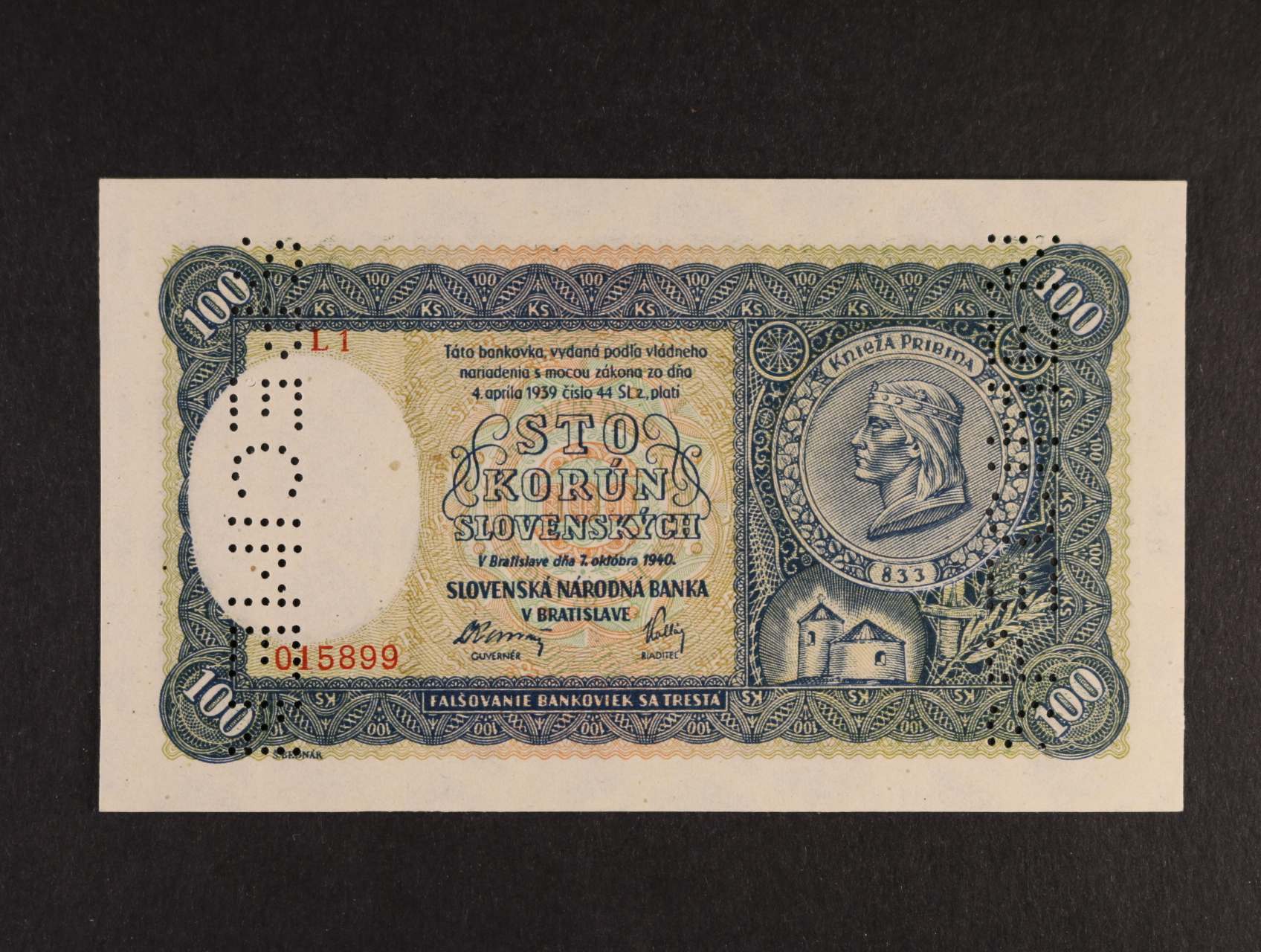 2058 100 Ks 7.10.1940 série L 1 II.vydání bankovní vzor s 2x svislou perforací SPECIMEN, Ba. 49a, Pi. 11s 3000