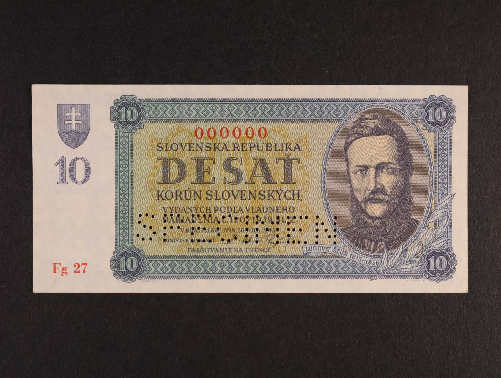 10 Ks 20.7.1943 série Fg 27 anulát, Ba. 54s, Pi. 6s, Ka. 50/a
