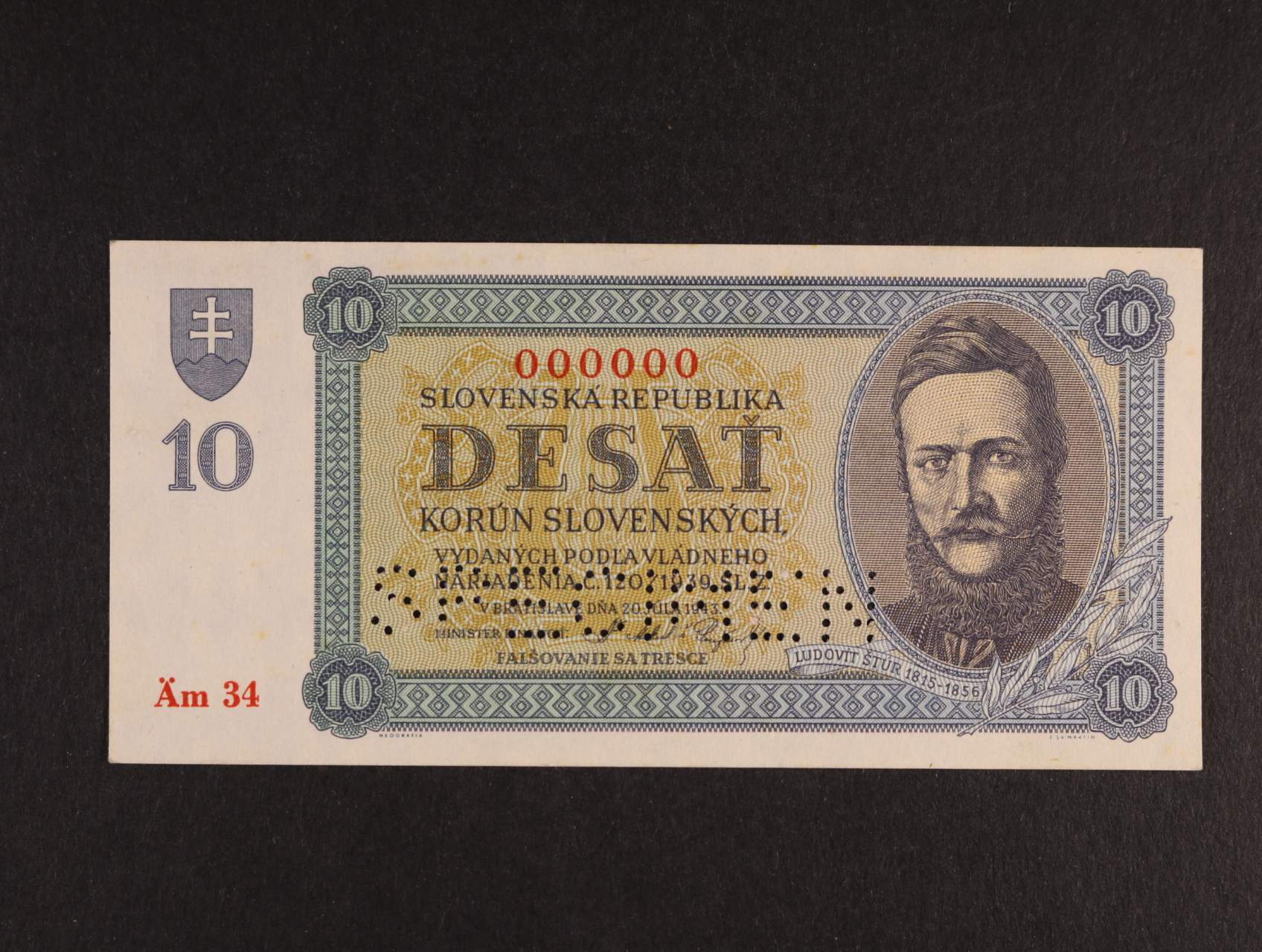 5000 Ks 18.12.1944 série 3Lk, nevydaná, perf. SPECIMEN, Ba. N5, Pi. 14a