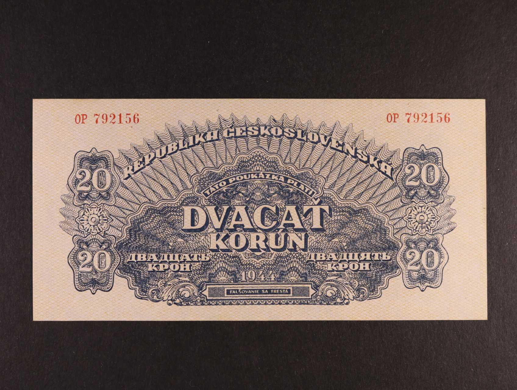 20 K 1944 série OP, číslovač 8, Ba. 58b, Pi. 47a
