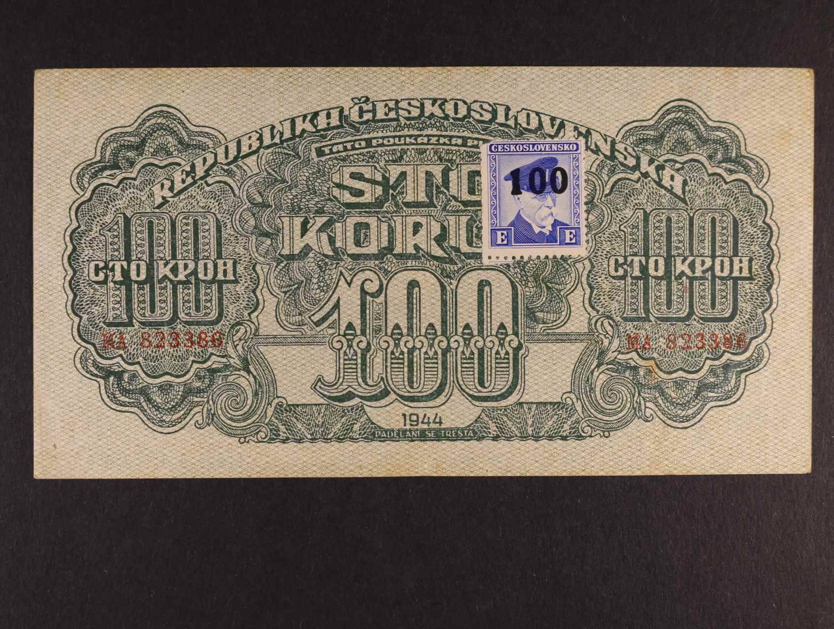100 K 1944 série MA kolkovaná, číslovač 6b, Ba. 66a1, Pi. 53a