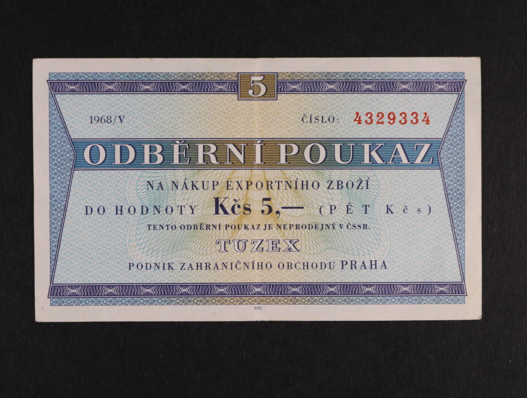Tuzex, 5 TKčs 1968/V, K.Š.K 35/V/3a