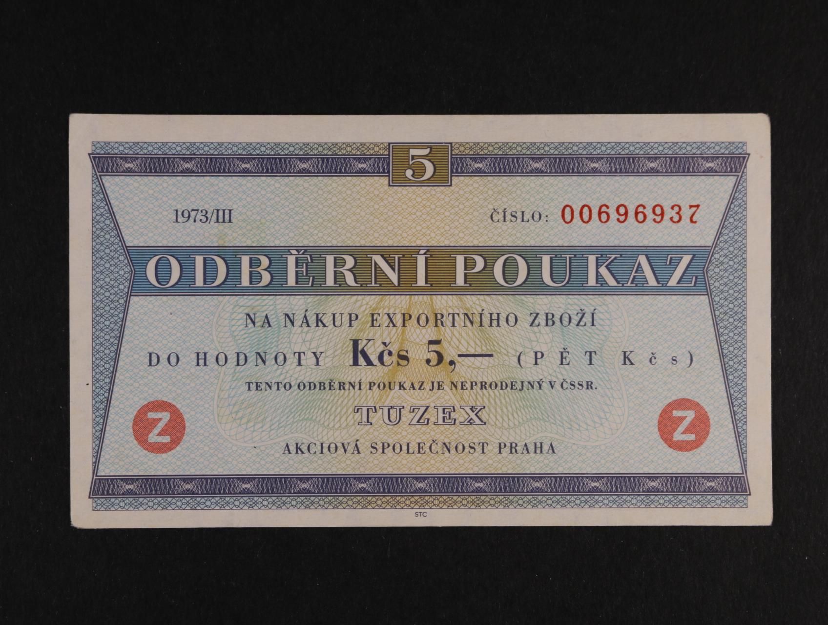 Tuzex, 5 TKčs 1973/IIII "Z" zahraniční, K.Š.K. 42/VI/b