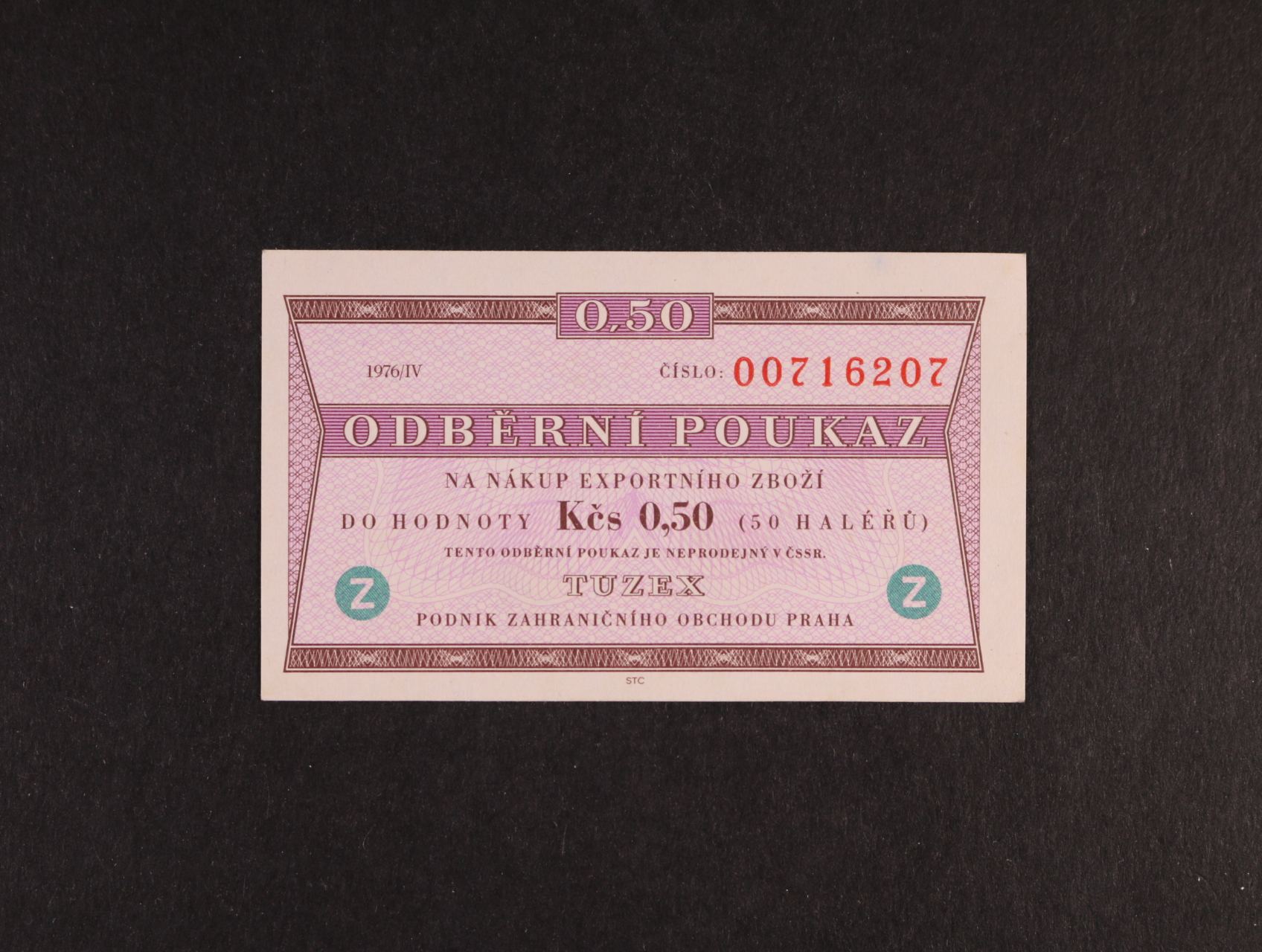 Tuzex, 0,50 TKčs 1976/IV "Z" zahraniční, K.Š.K. 47/VII/b