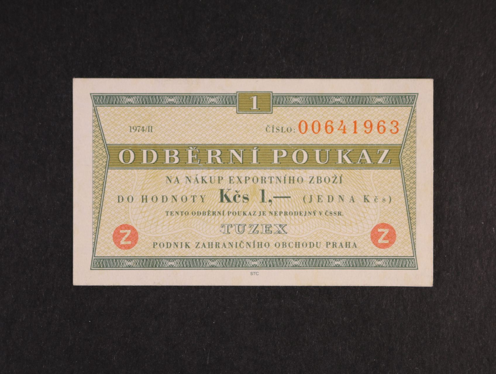 Tuzex, 1TKčs 1974/II "Z" zahraniční, K.Š.K. 48/VII/b