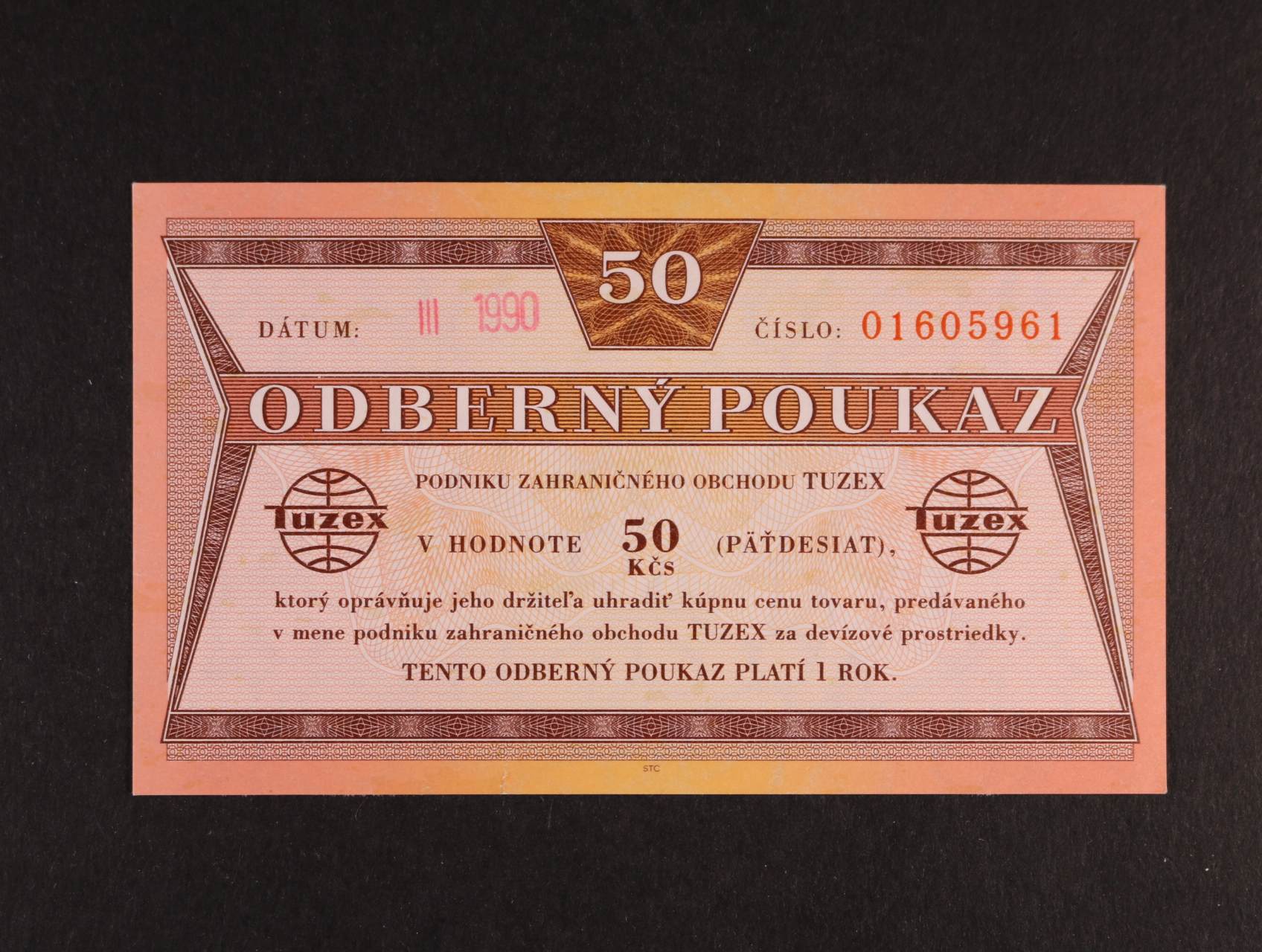Tuzex, 50 TKčs s raz. III.1990, K.Š.K. 68/IX/a