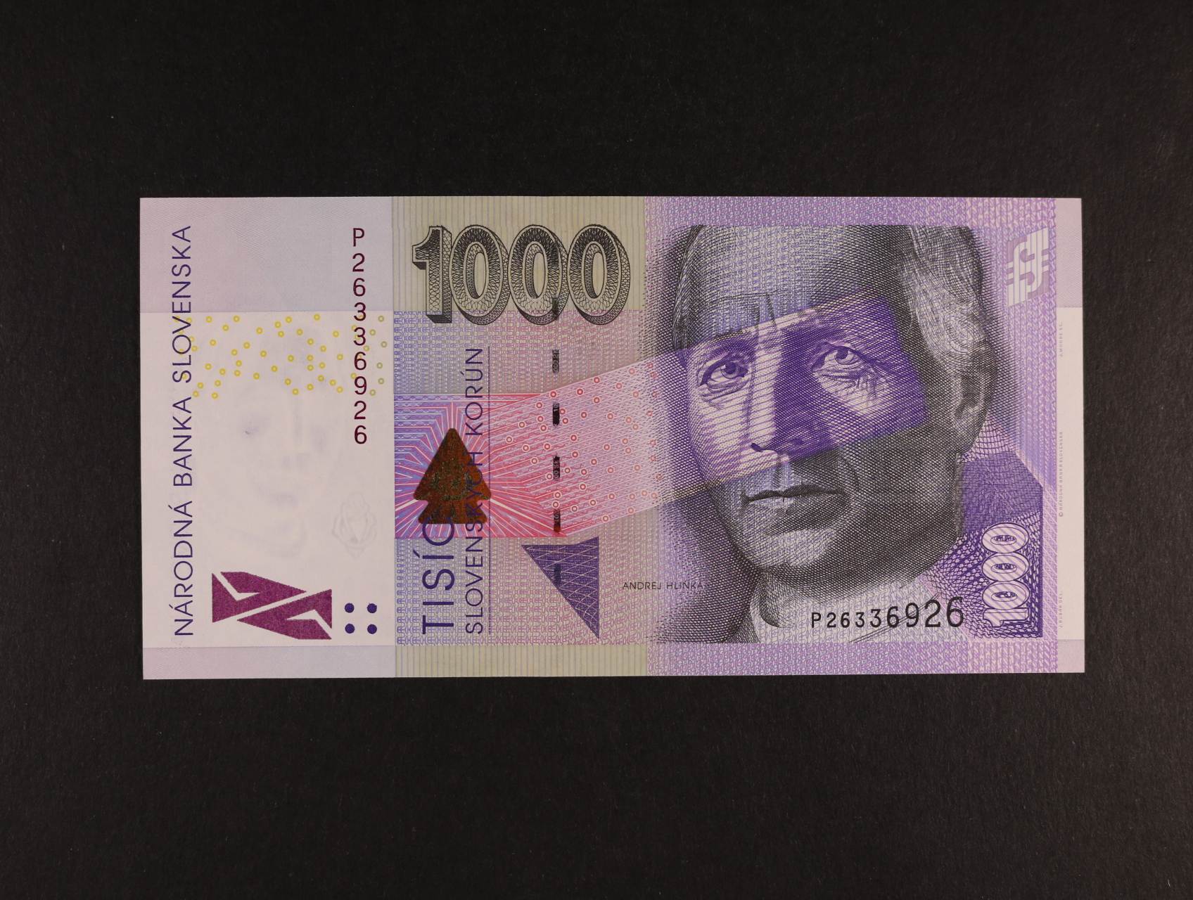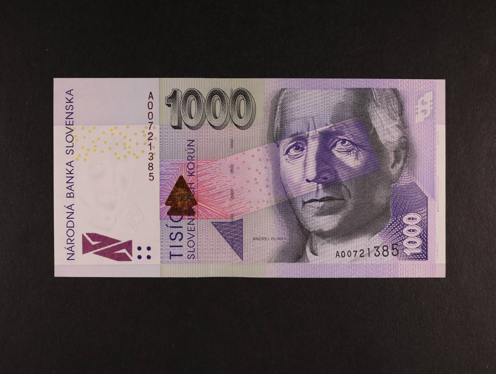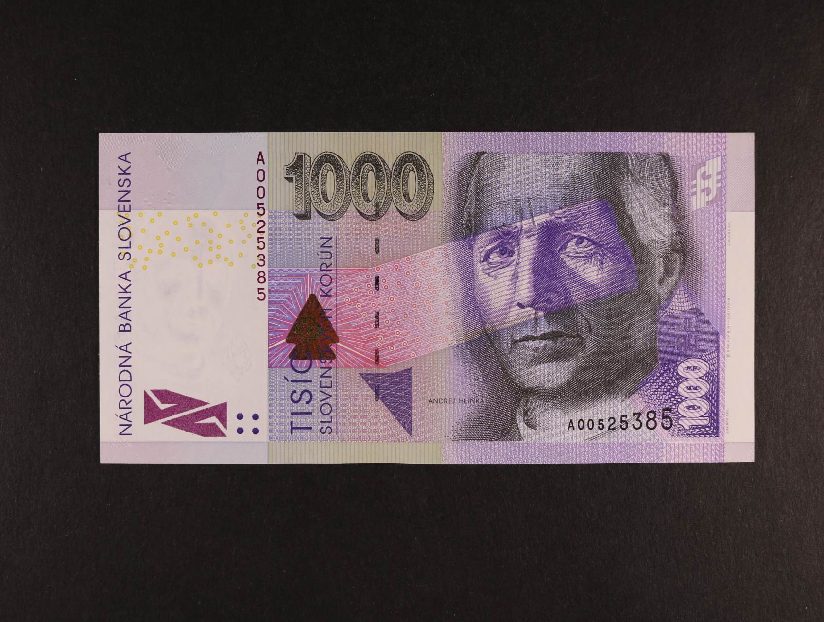 5000 Sk 1995 série A vystřižená z archu, krajový kus, číslo 00001542, Ba. SK 11a, Pi. 29