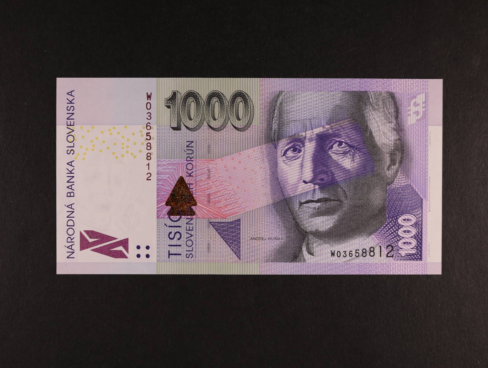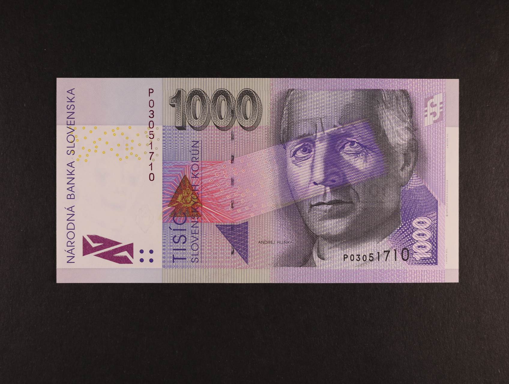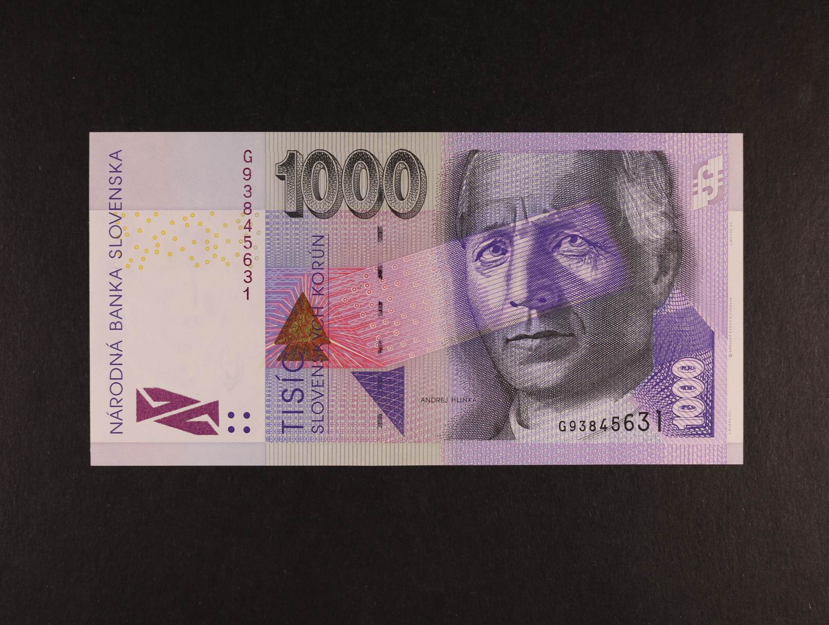 5000 Sk 1995 série A vystřižená z archu, krajový kus, číslo 00001542, Ba. SK 11a, Pi. 29