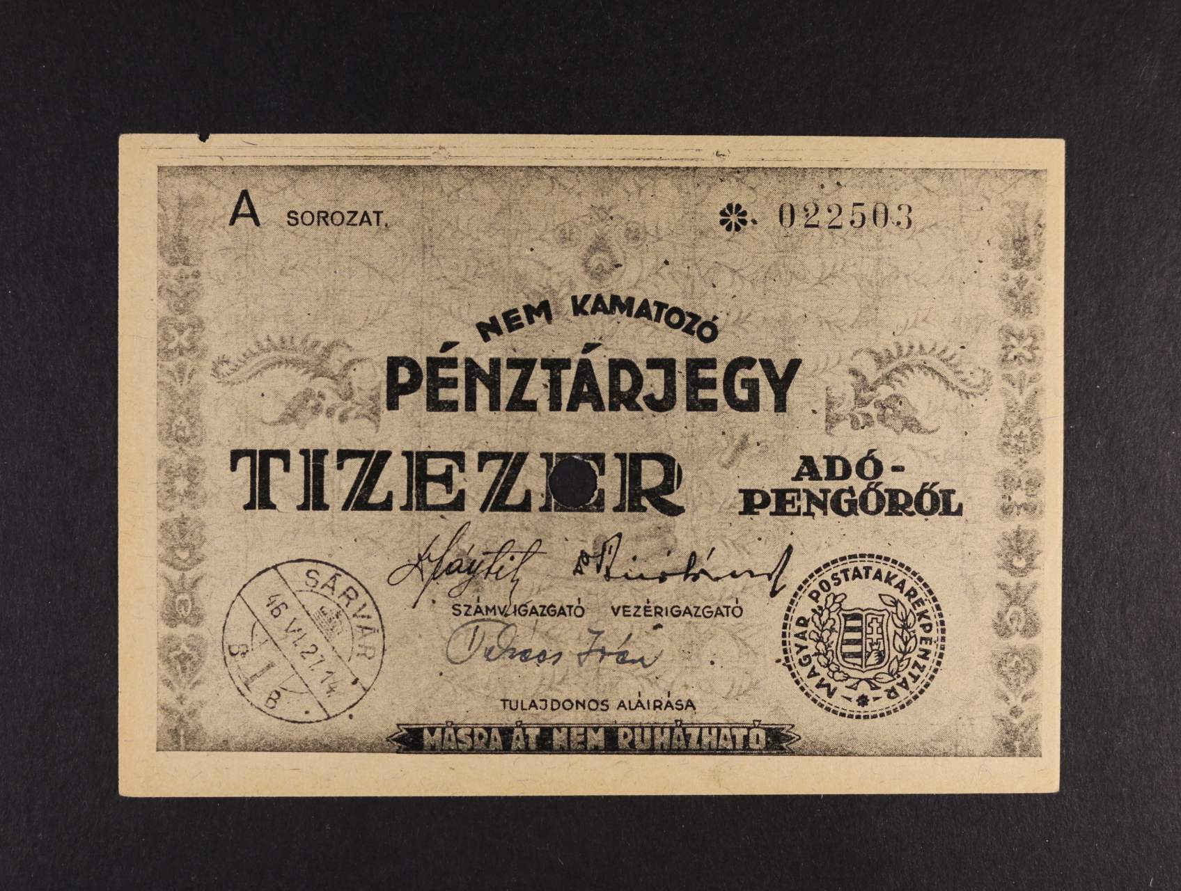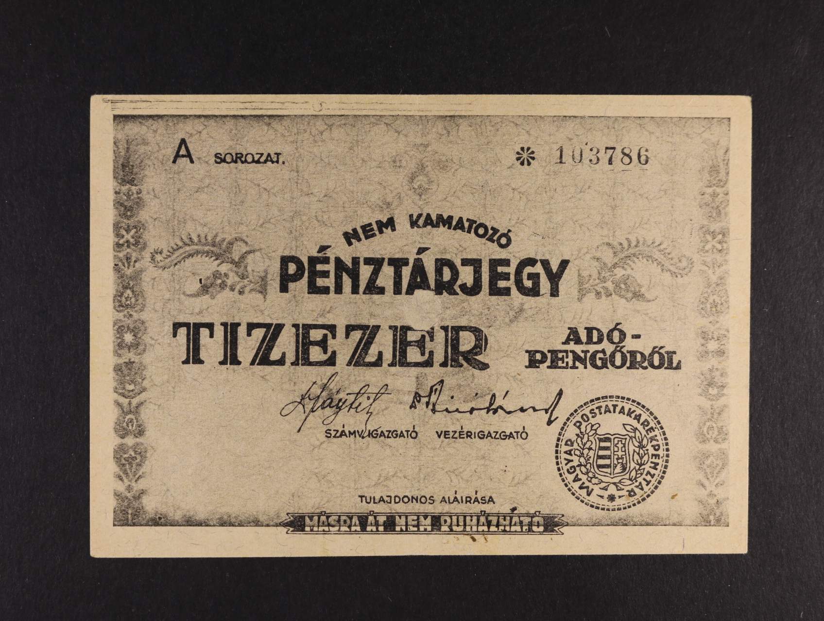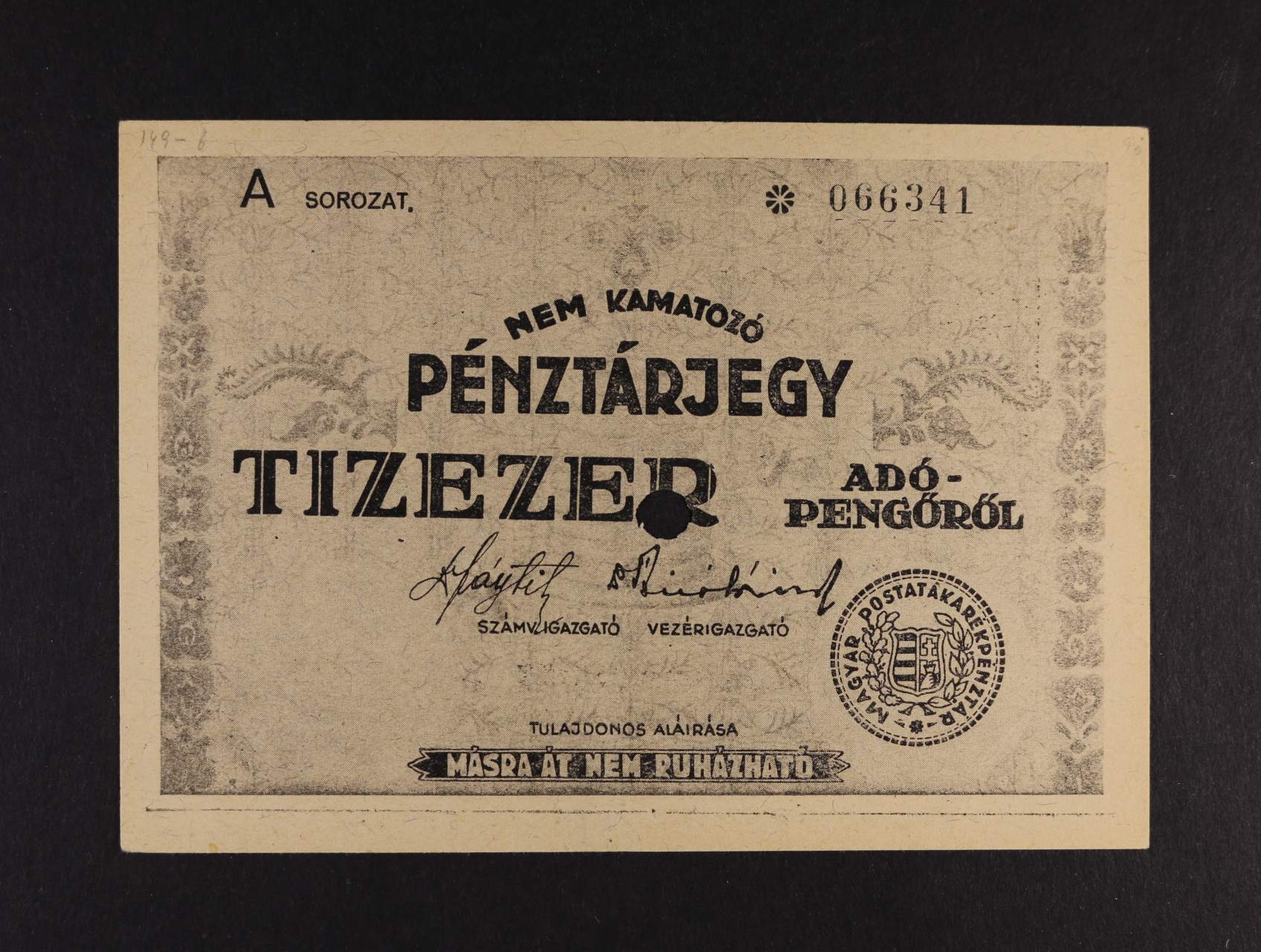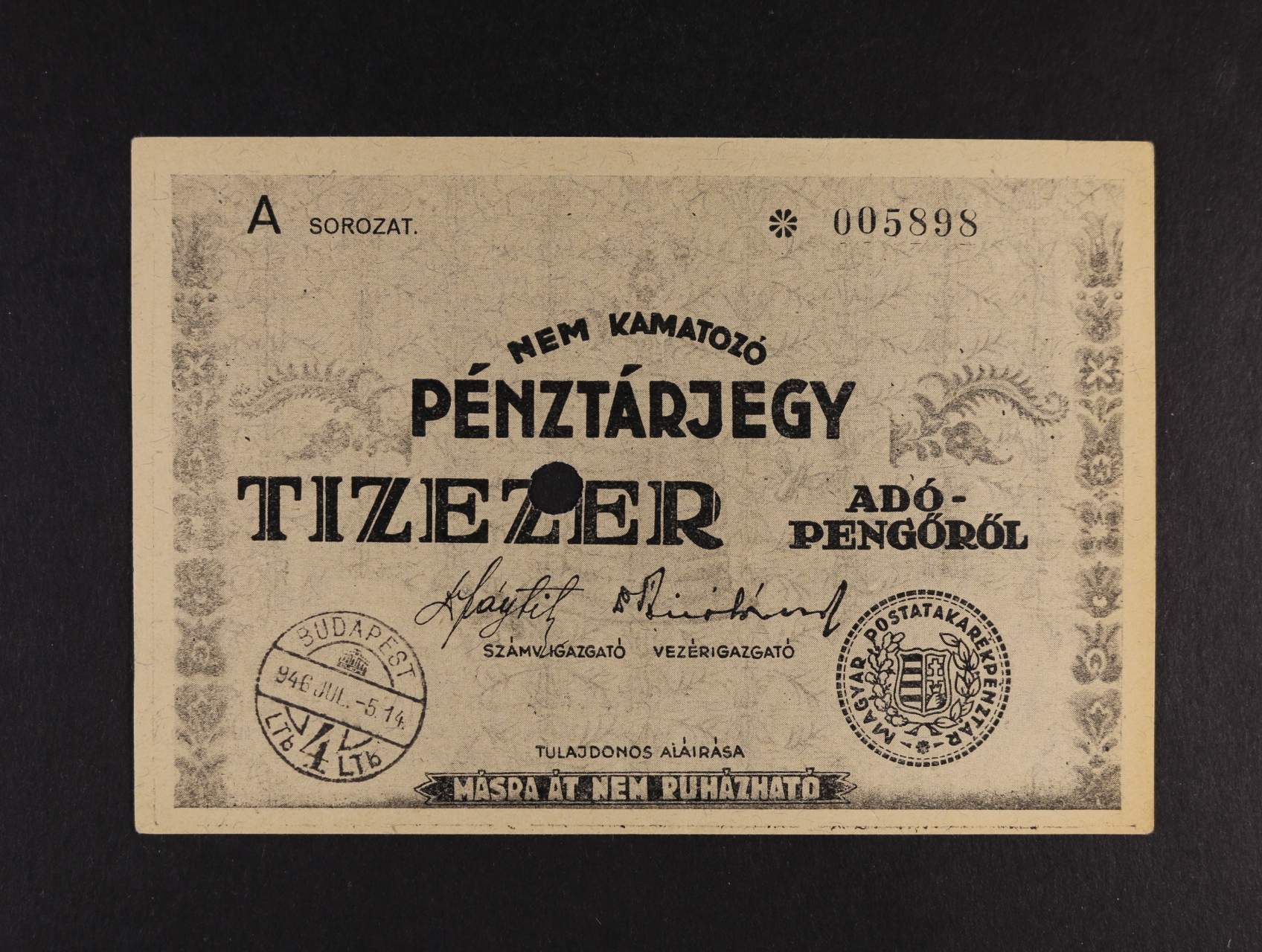 2331 10.000 1946 Adó-pengö Pénztárjegy II.vyd., kulaté poštovní raz., třetí vlastnoruční podpis, Pi. 149 1000