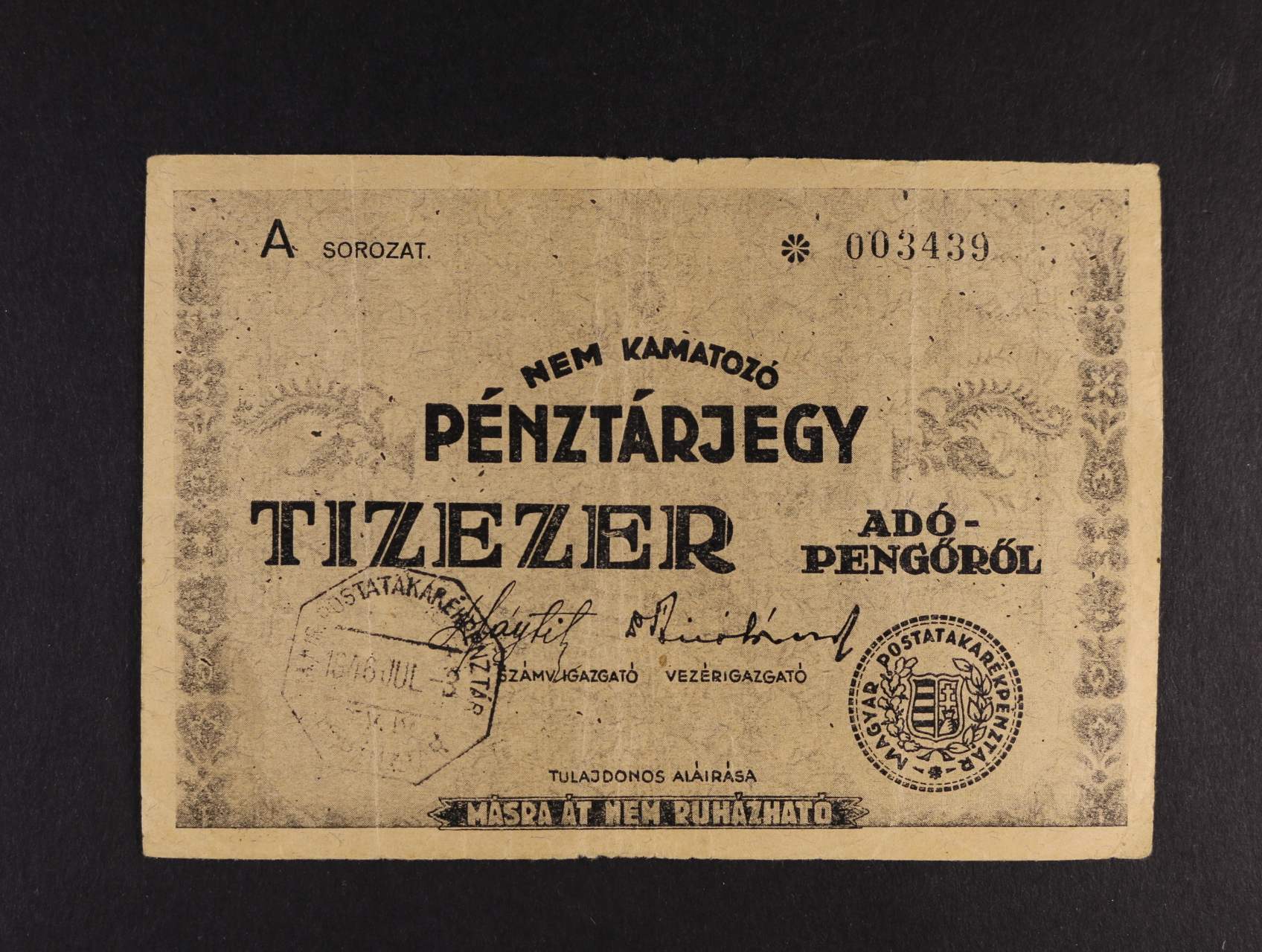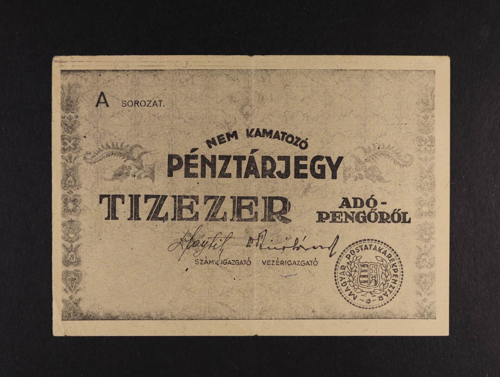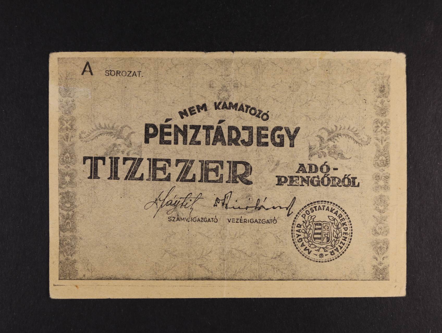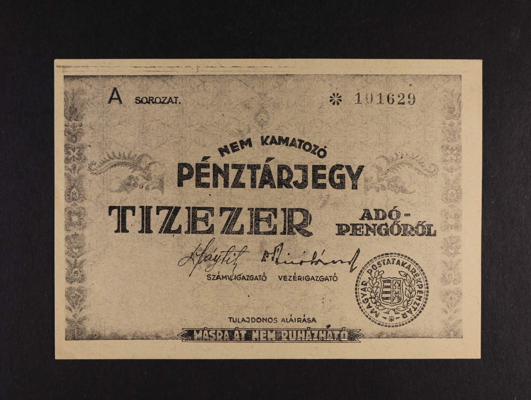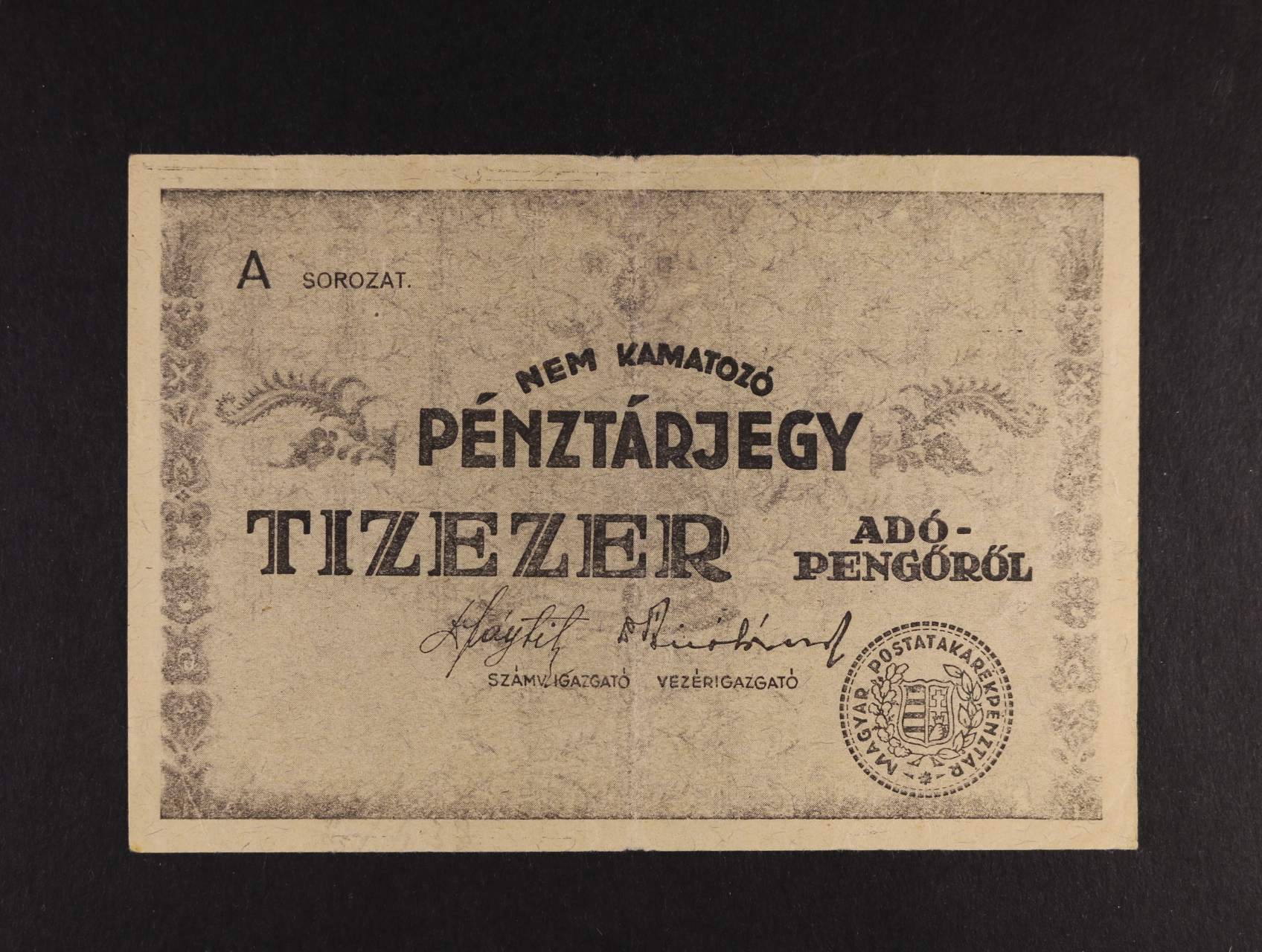 2331 10.000 1946 Adó-pengö Pénztárjegy II.vyd., kulaté poštovní raz., třetí vlastnoruční podpis, Pi. 149 1000