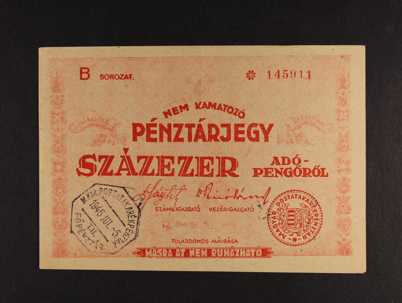 2340 100.000 1946 Adó-pengö Pénztárjegy I.vyd., hranaté raz. Kir., Pi. 147 1500