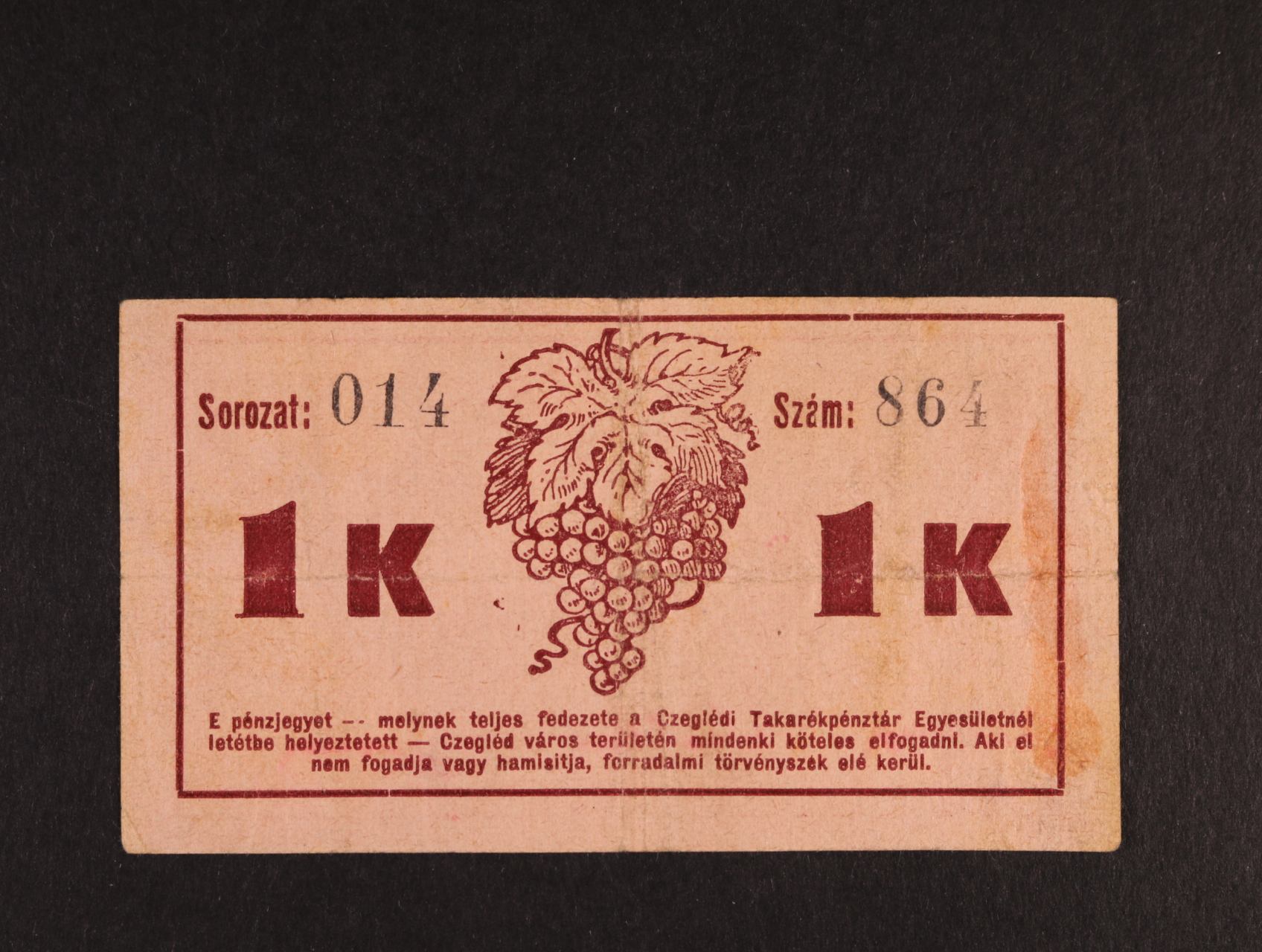 Czegléd, 1 K 31.5.1919 Czegléd Városi Pénztár, CEG-1.1