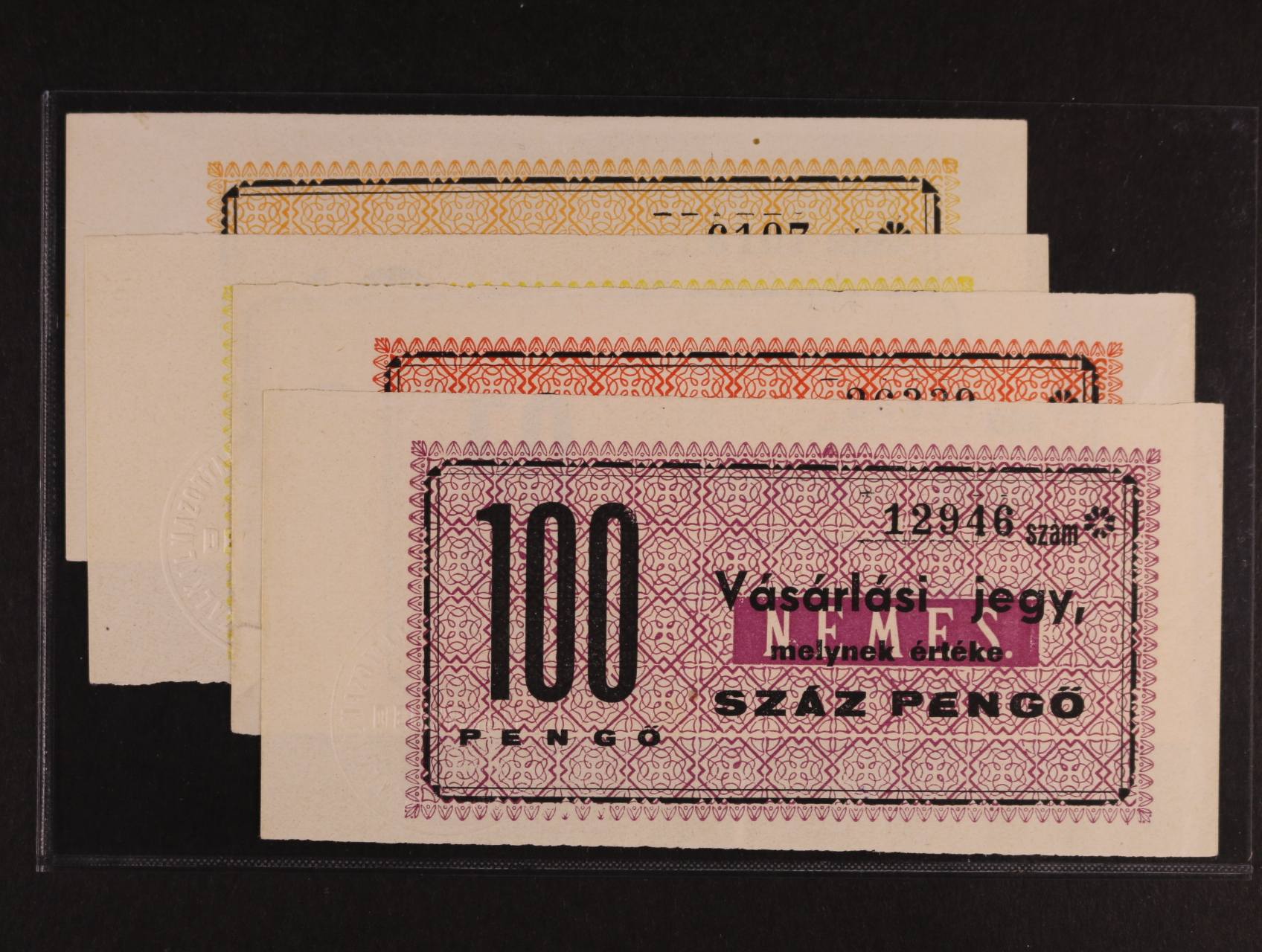 Debrecen, 10, 20 Pgö Kaja Vásárlásy Jegy, 50, 100 Pgö Nemes Vásárlási Jegy, DEB-5.1, 2, 6.1, 2