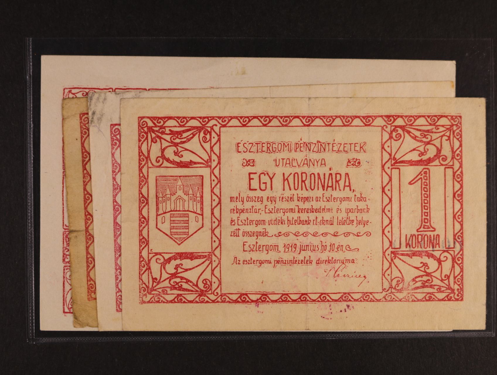 Esztergom, 3x 1 K, 2 K 10.6.1919 Esztergomi Vármegye, EST-1.1, 2