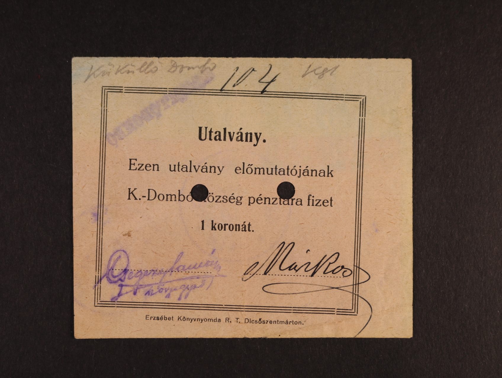 Küküllödombó, 1 K b.d. Községipénztár, KÜK-1.2