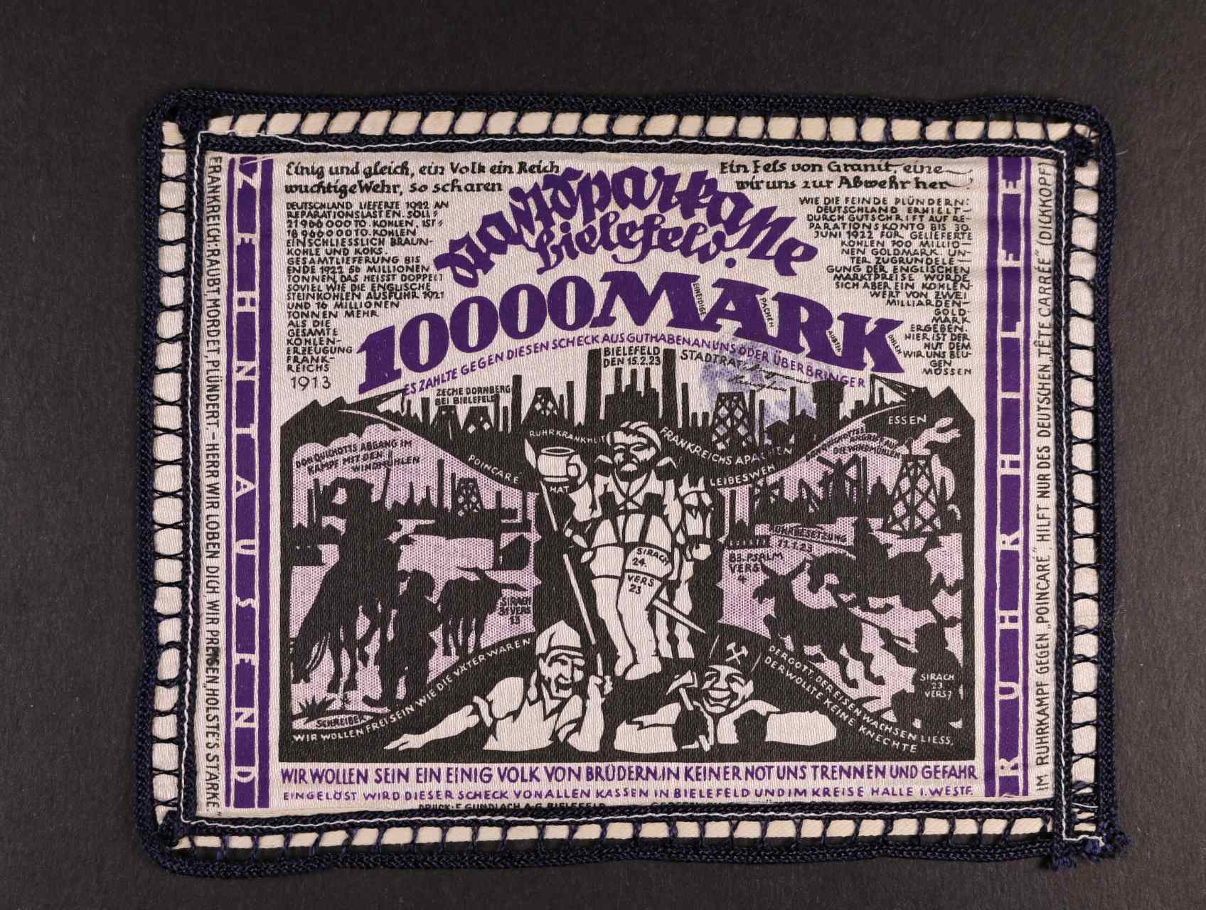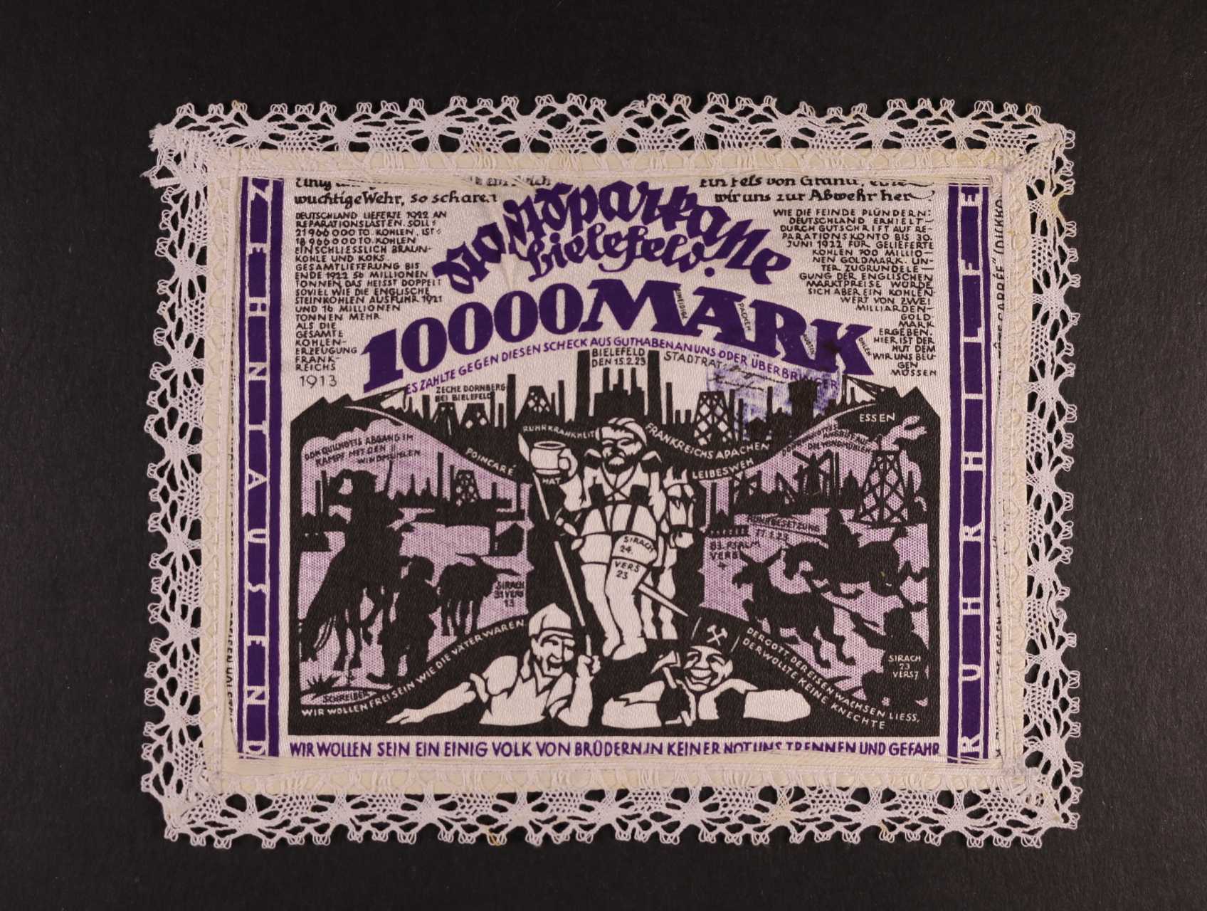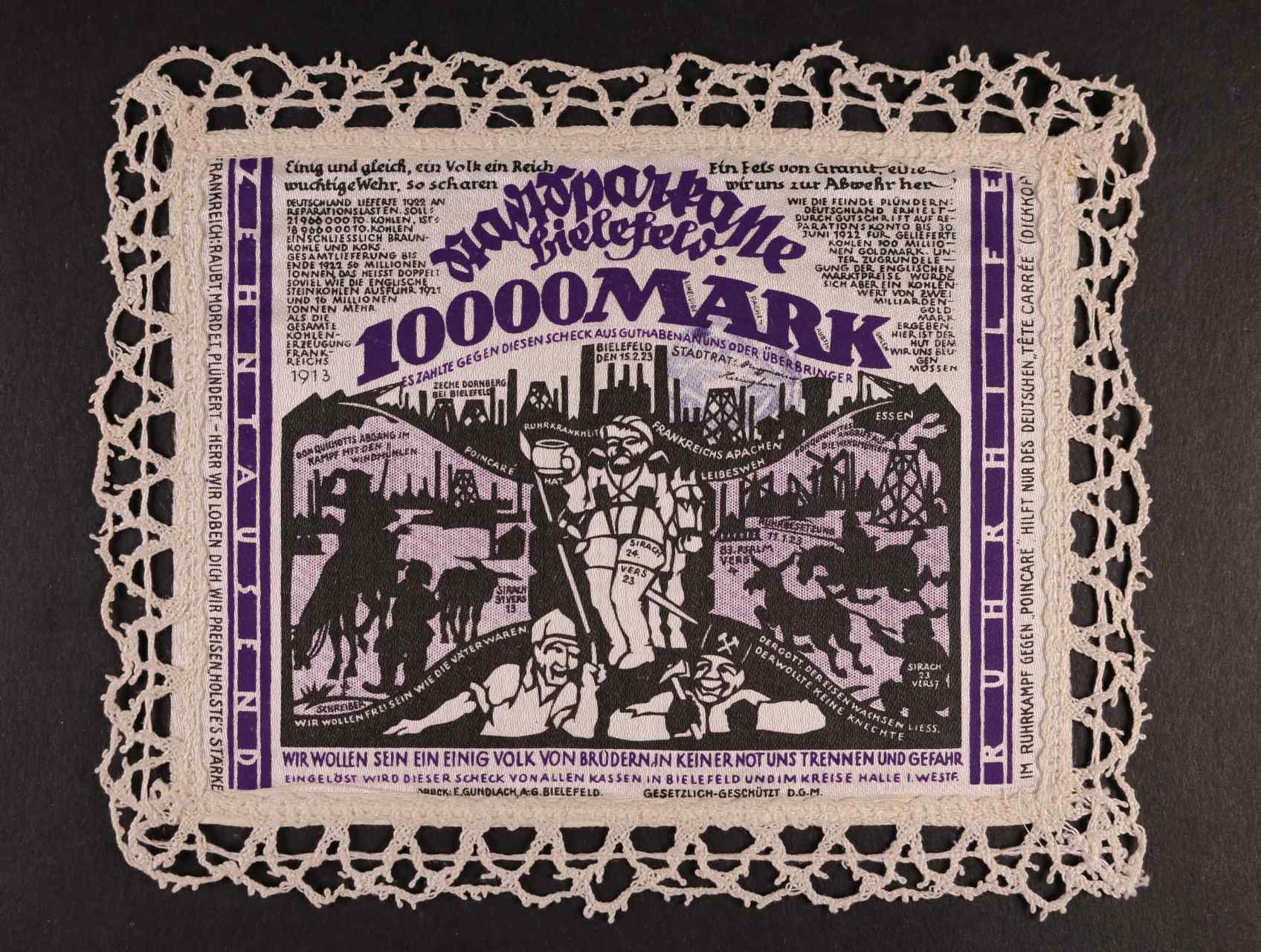 Bielefeld, 10000 Mark 15.2.1923 hedvábí s krajkovým lemováním, Grab. 70c