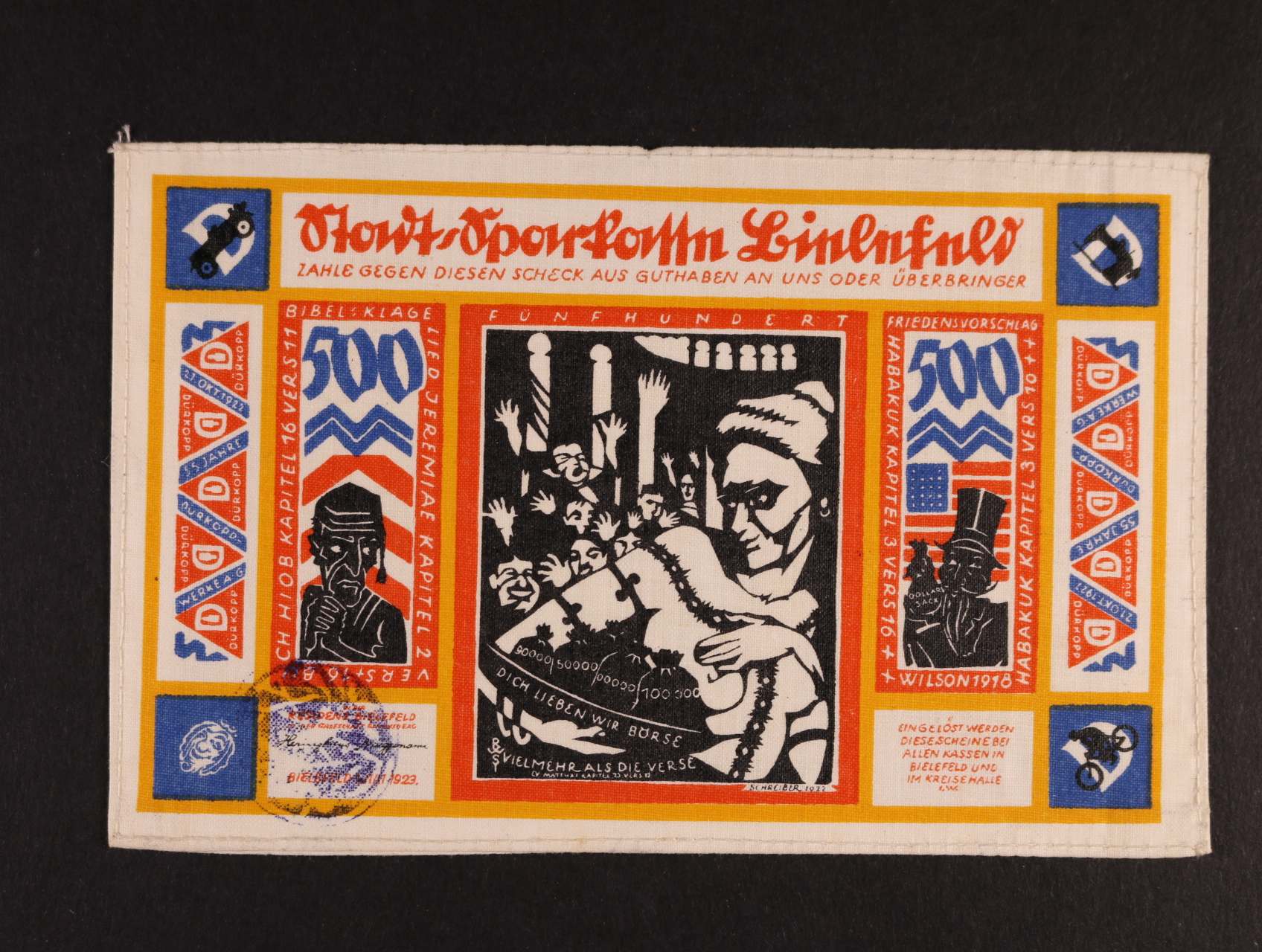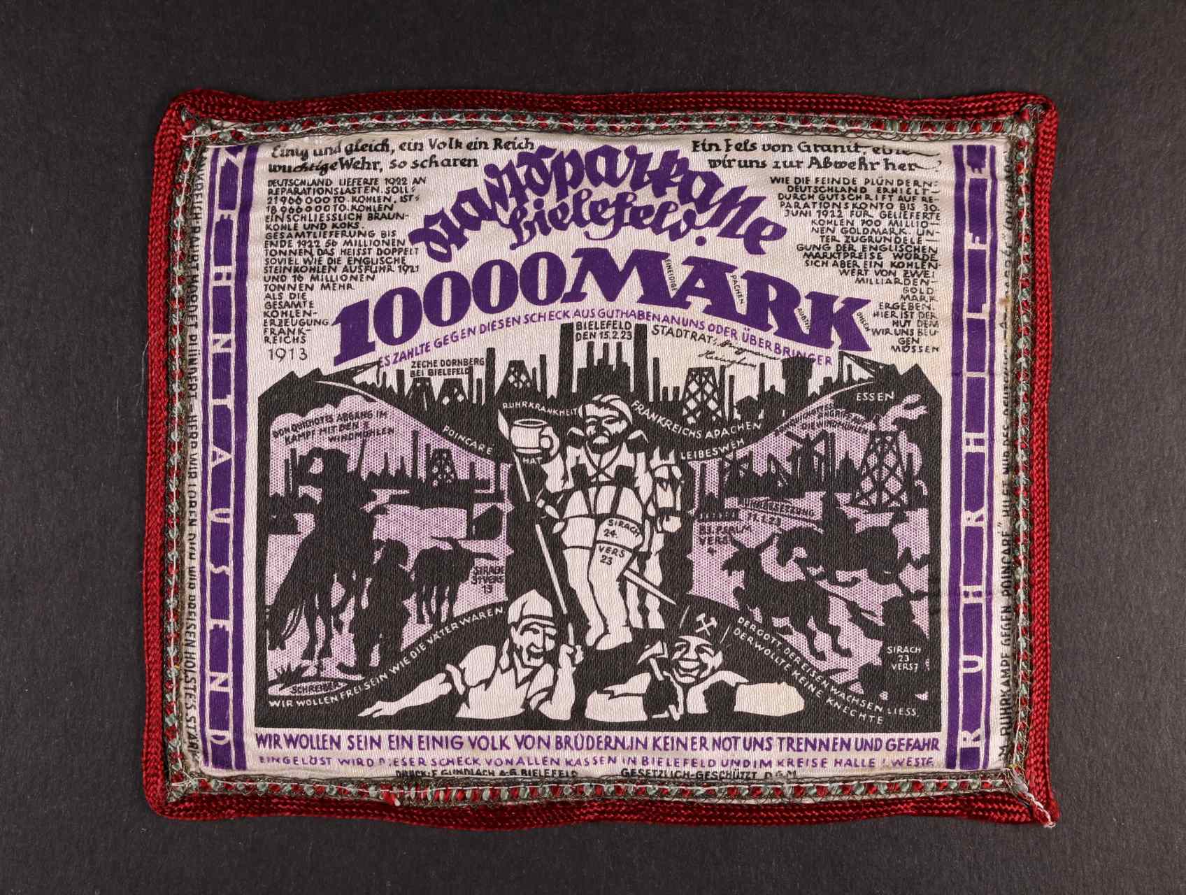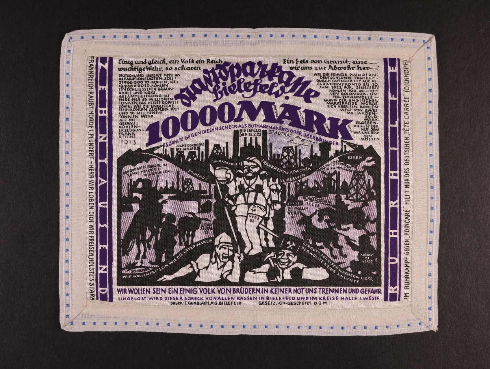 Bielefeld, 10000 Mark 15.2.1923 hedvábí s krajkovým lemováním, Grab. 70c