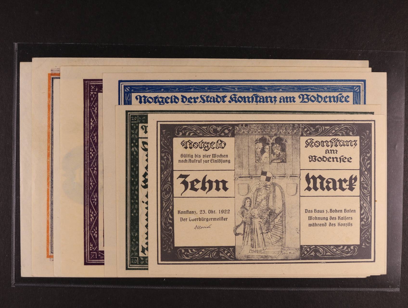 2481 Konstanz (Kostnice) sada 10, 20, 50, 100, 100, 500, 500 Mark 1922 tzv. Husova série, celkem 7ks 600